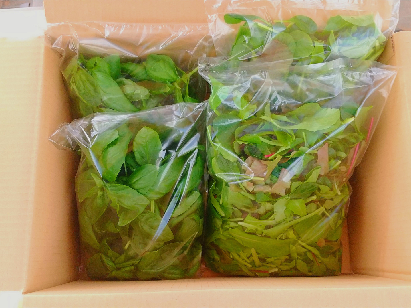 ベビーリーフ2袋(600g)、バジル2袋(200g)