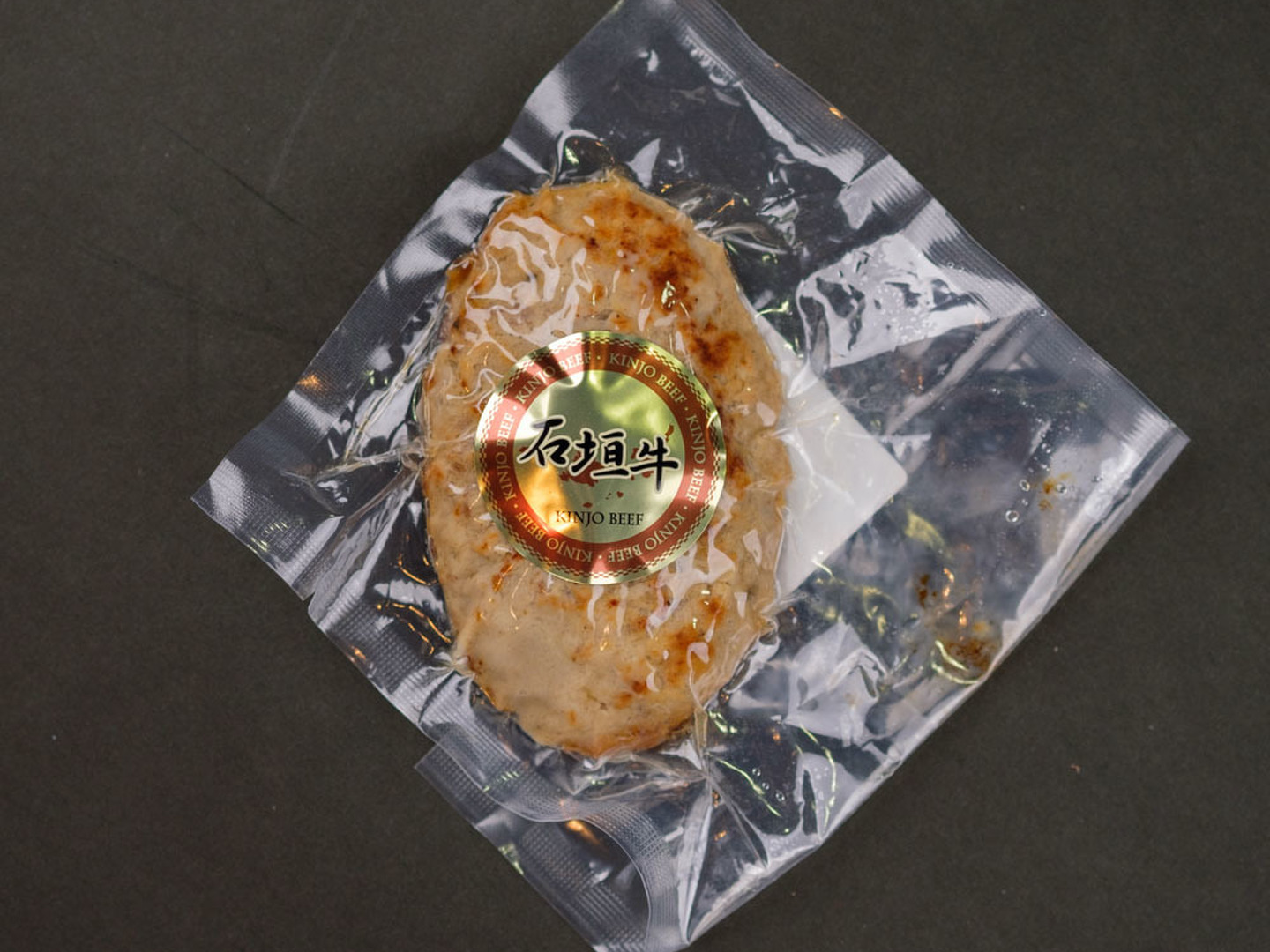 長期熟成肥育のめす牛「石垣牛KINJOBEEF」をあえて粗挽きに食感を楽しめるようにしました。