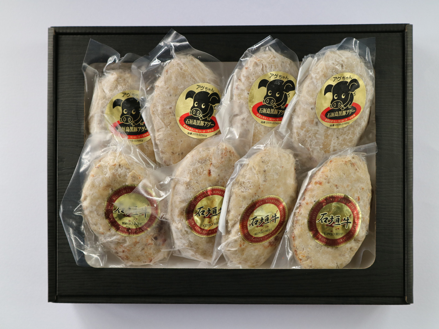 石垣牛KINJOBEEFハンバーグ4個、石垣島アグー豚4個セット