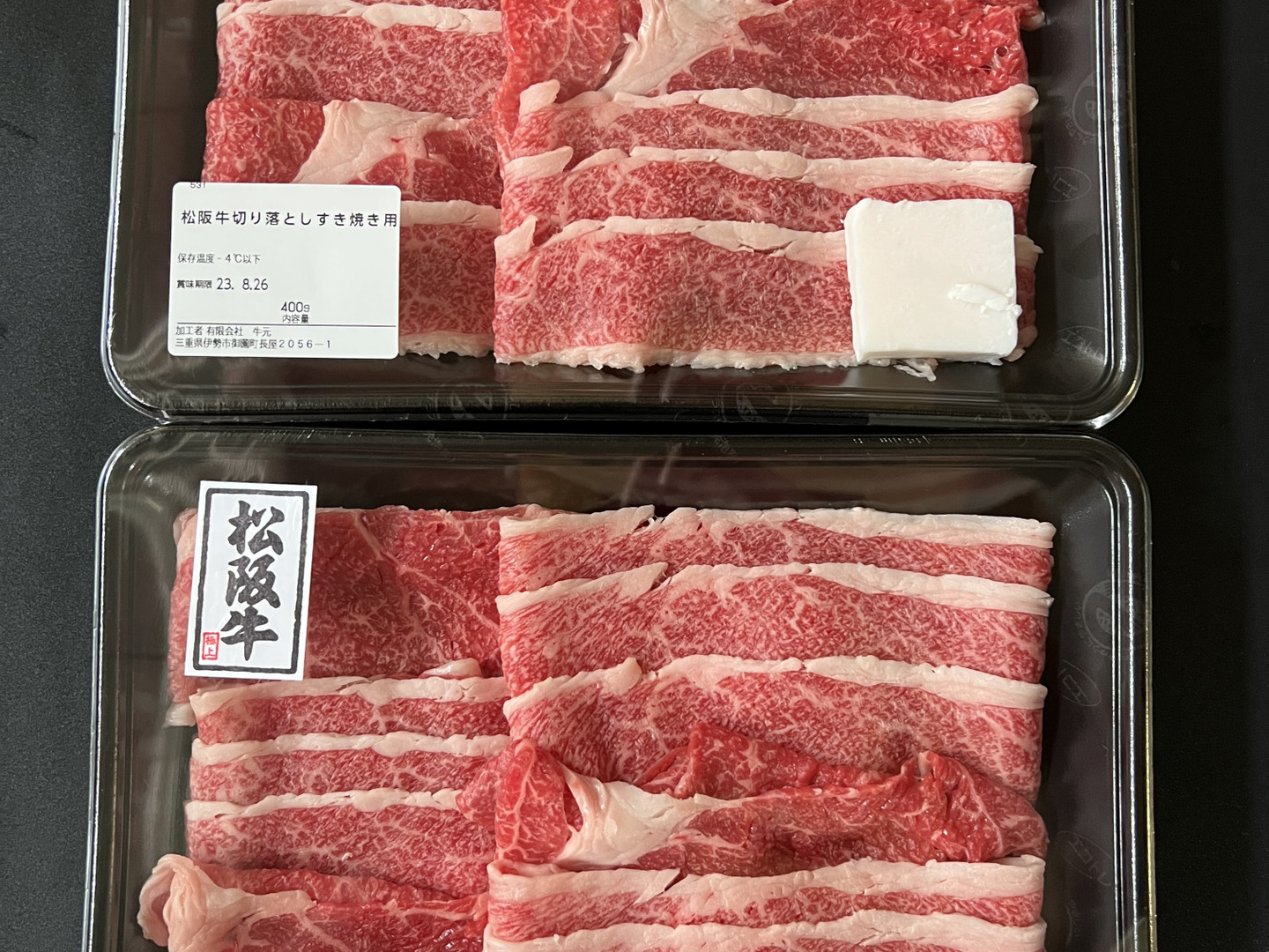 松阪牛のカタモモバラのすき焼き用の切り落とし800gの商品です。