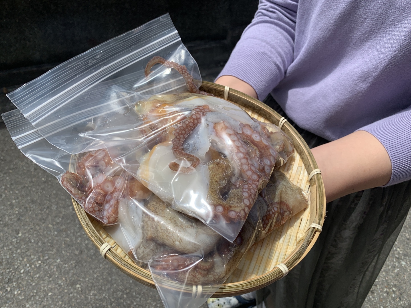 茹でだこ、唐揚げ、たこ飯、マリネ、カルパッチョなどさまざまな料理に合うかと思います。