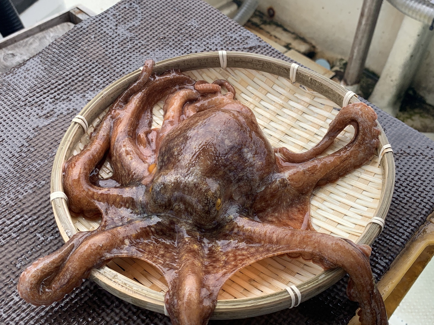タコは一度冷凍してからのほうが、塩もみする際にヌメリが取れやすく、身も柔らかくなりますので、釣り上げてすぐに締めて冷凍しました。