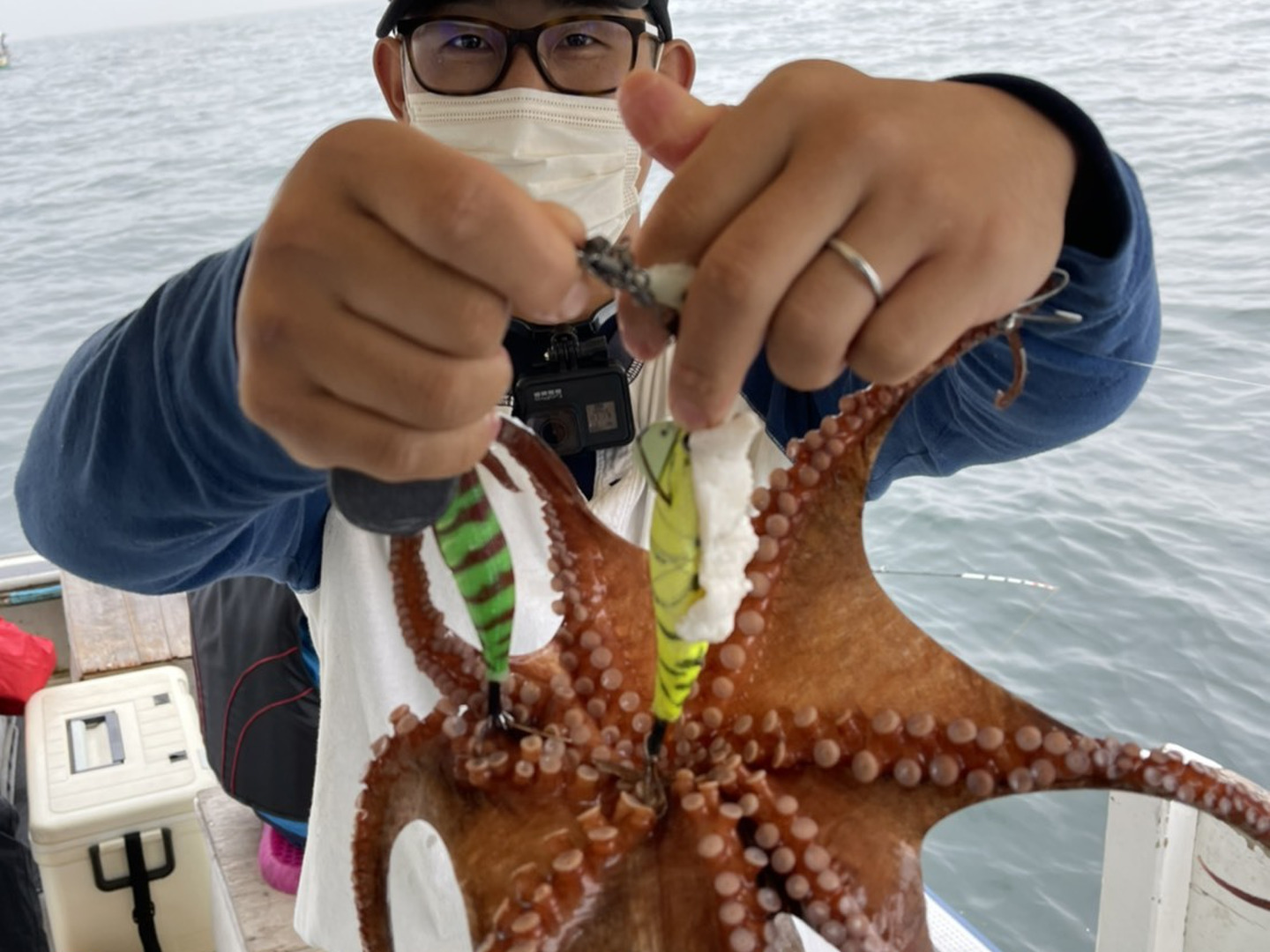 タコは一度冷凍してからのほうが、塩もみする際にヌメリが取れやすく、身も柔らかくなりますので、釣り上げてすぐに締めて冷凍しました。