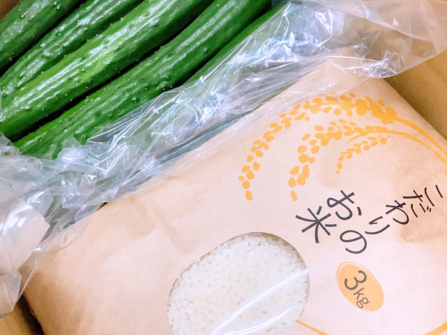 きゅうりは1.5kg、お米は3kg入ります。