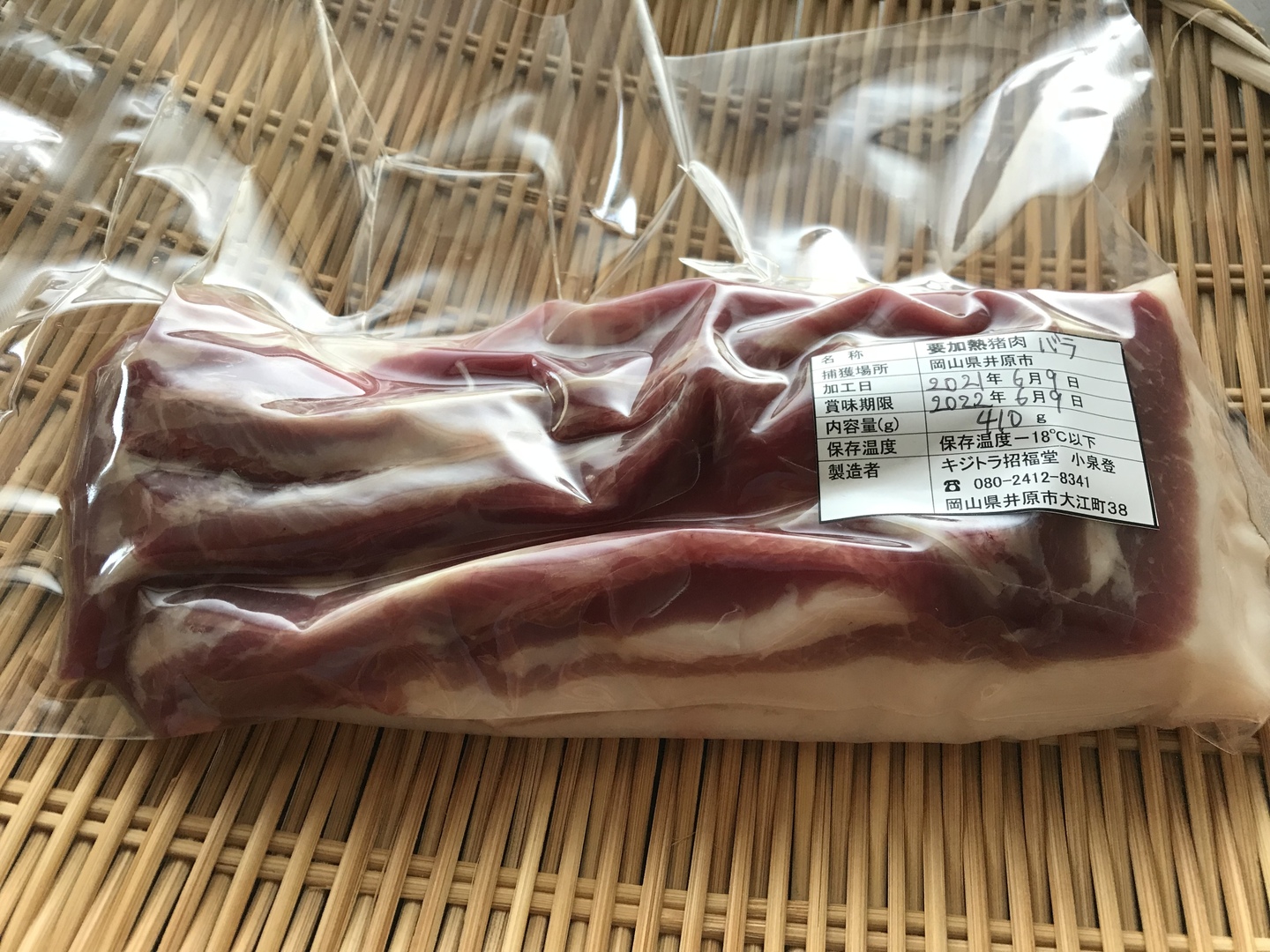 《ジビエ》脂のり◎✨初夏の猪肉【バラ】410g ブロック 焼肉/BBQに♪甘〜い脂がほとばしる‼︎