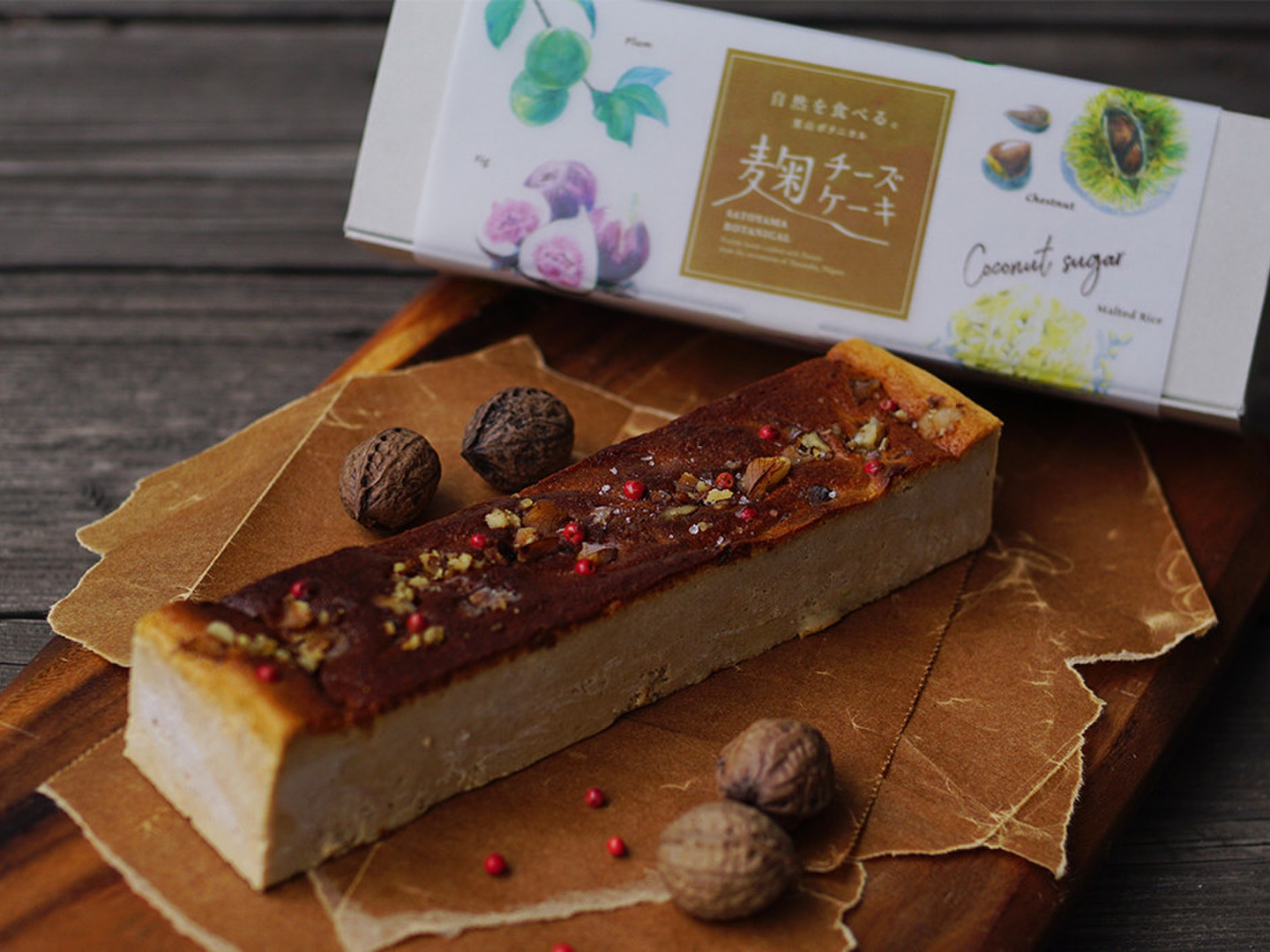 麹チーズケーキは、麹の優しい甘さと、しっとりとした食感をお楽しみいただける、グルテンフリーのチーズケーキです。新潟県上越市安塚の山奥の棚田で、栽培期間中農薬、化学肥料不使用でつくった酒米を主原料に、里山で採れた季節の素材を贅沢にトッピング。