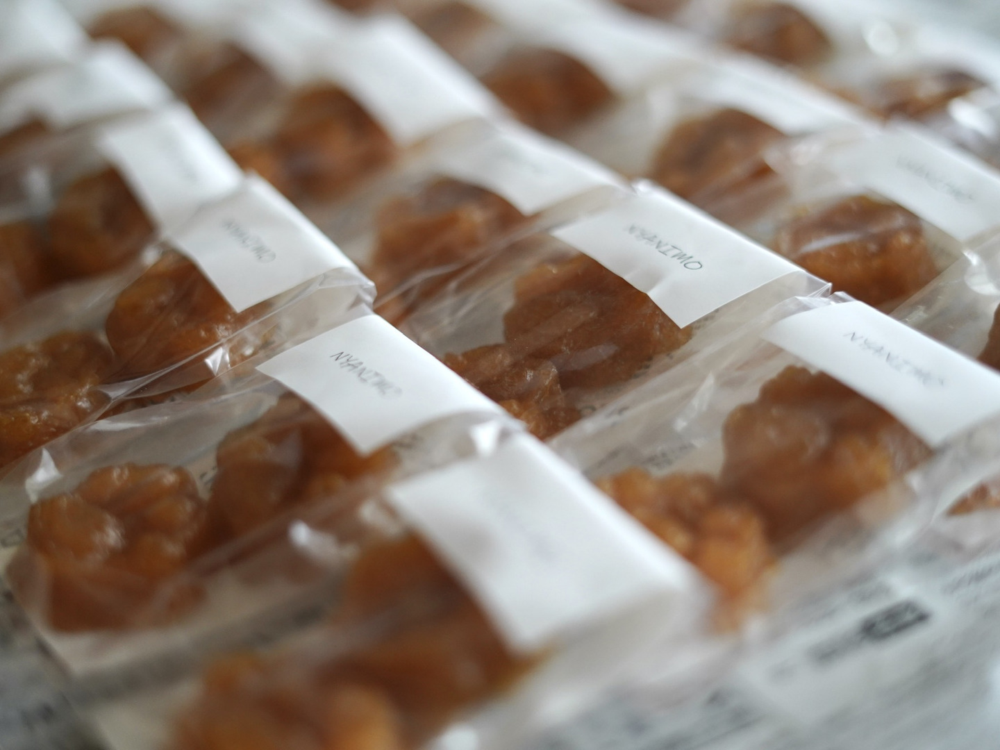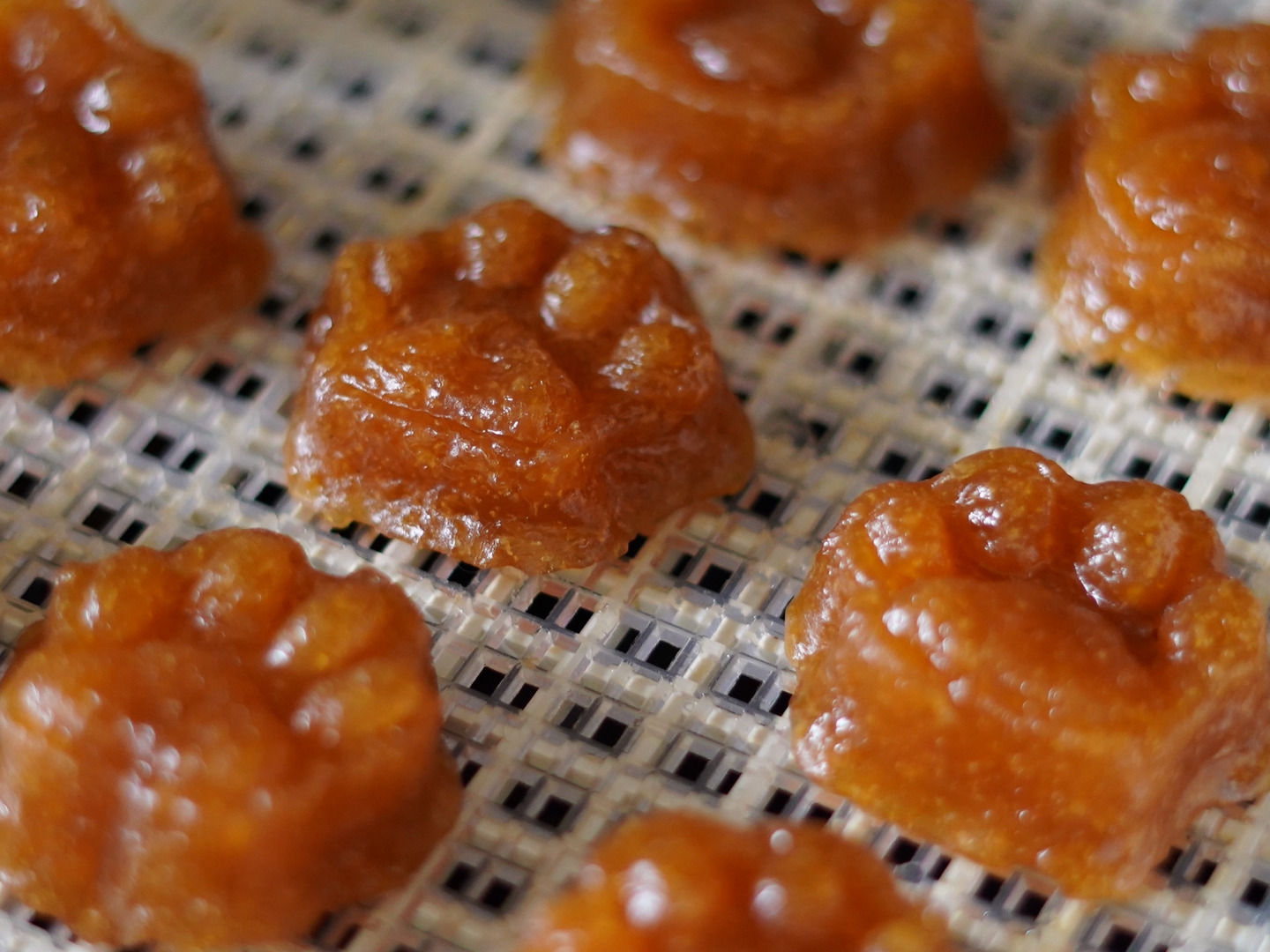 甘くとろとろねっとりとした紅はるかがかわいらしい肉球のかたちの干し芋になりました。