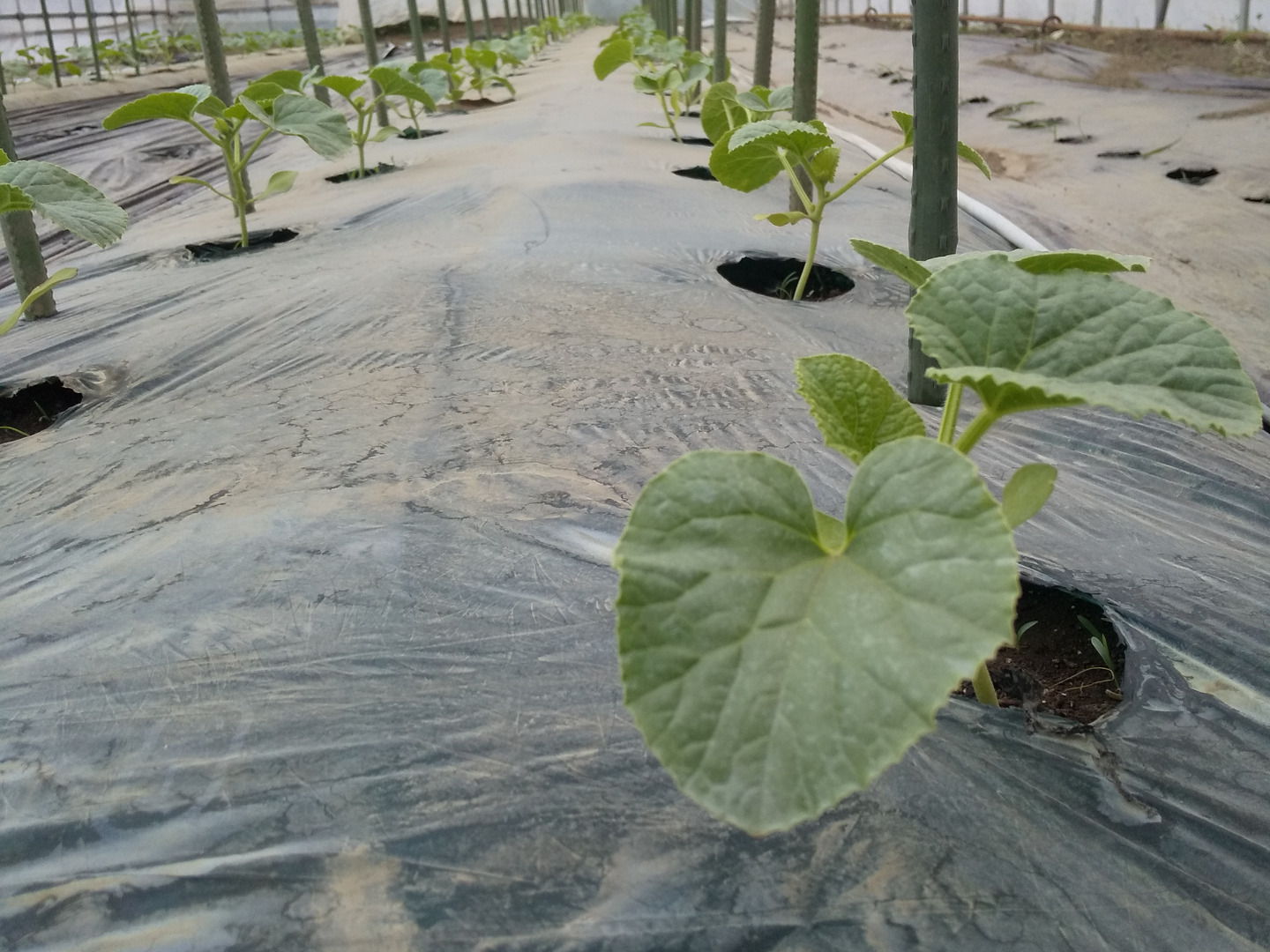 葉色、葉形、新芽、ツル、雄花の位置、節間長、着果位置の確認など、