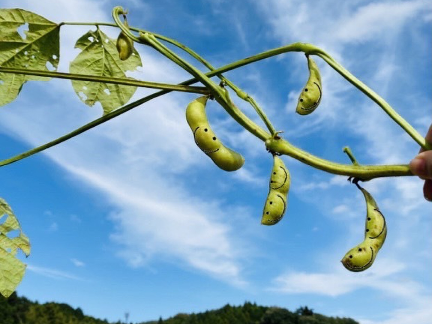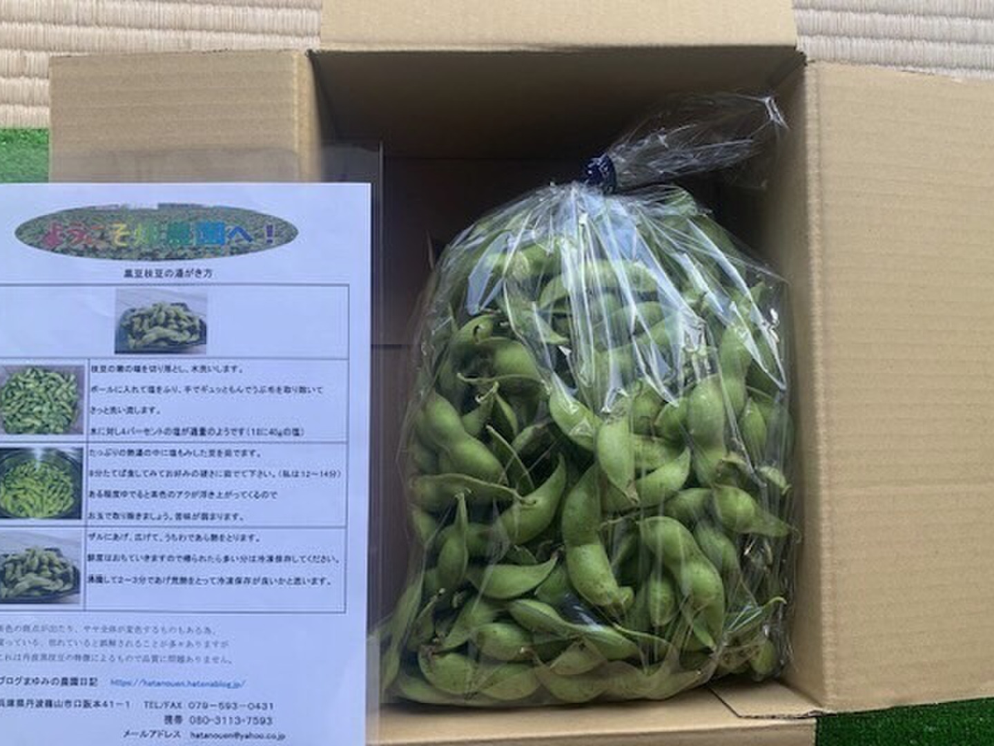 丹波黒大豆が成熟して黒豆(皆さんがお正月によく食べるもの)になる前の青く若い枝豆が丹波黒枝豆です。口阪本地方特有の気候と豊かな保水力、これらが生み出す「丹波の霧海」が、甘みの強い、大粒の黒大豆を育ててくれます。レシピを同封させて頂きますが、サッと塩茹でするだけで、子供が喜ぶおやつに、また大人のお酒のつまみになります。ぜひ一度食べてみて下さい。
