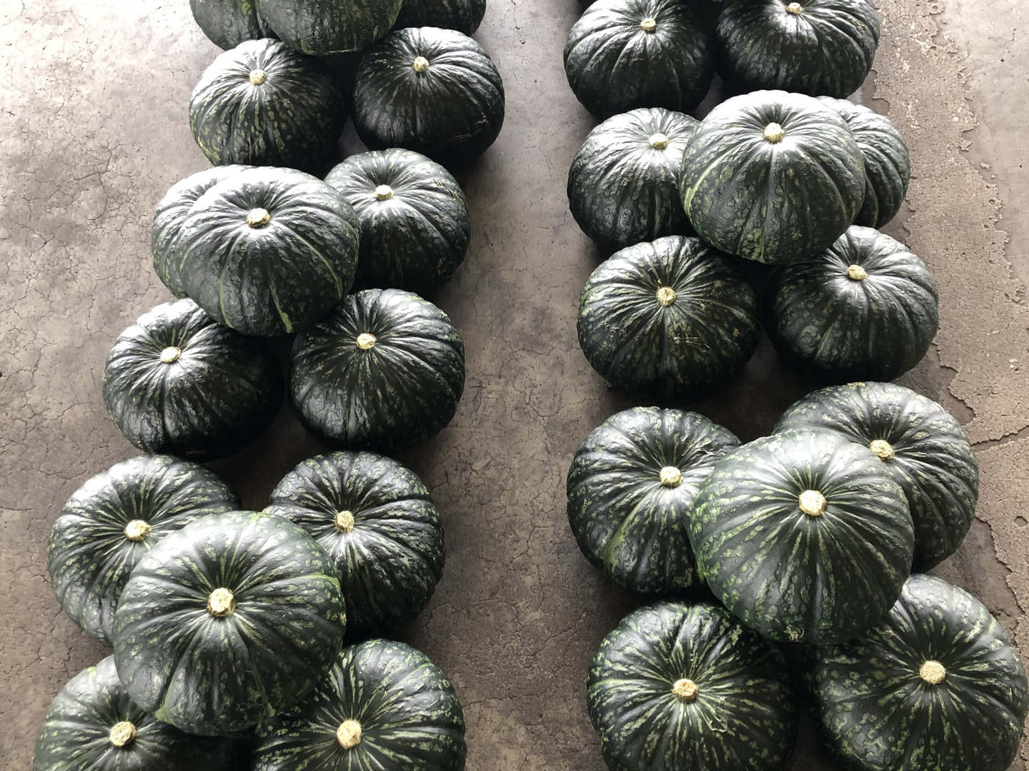栗や男爵芋のようにホクホクとしたかぼちゃです。非常に糖度が強く甘いので人気の高い品種となっています。収穫後に1週間ほど追熟をする事で粉質〜粘質に変化して甘さが増していくのも特徴。