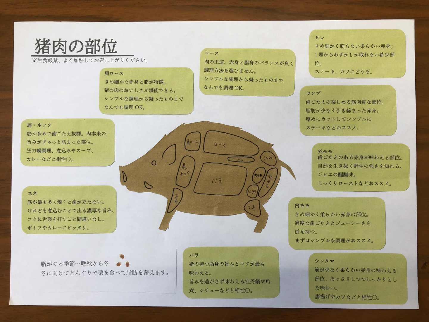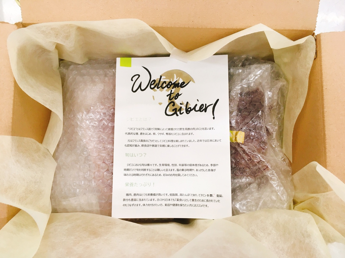 猪と鹿の各部位紹介や調理の基礎が載っているパンフレットもお付けしますので、ジビエ初心者の方にもおすすめです(^^)