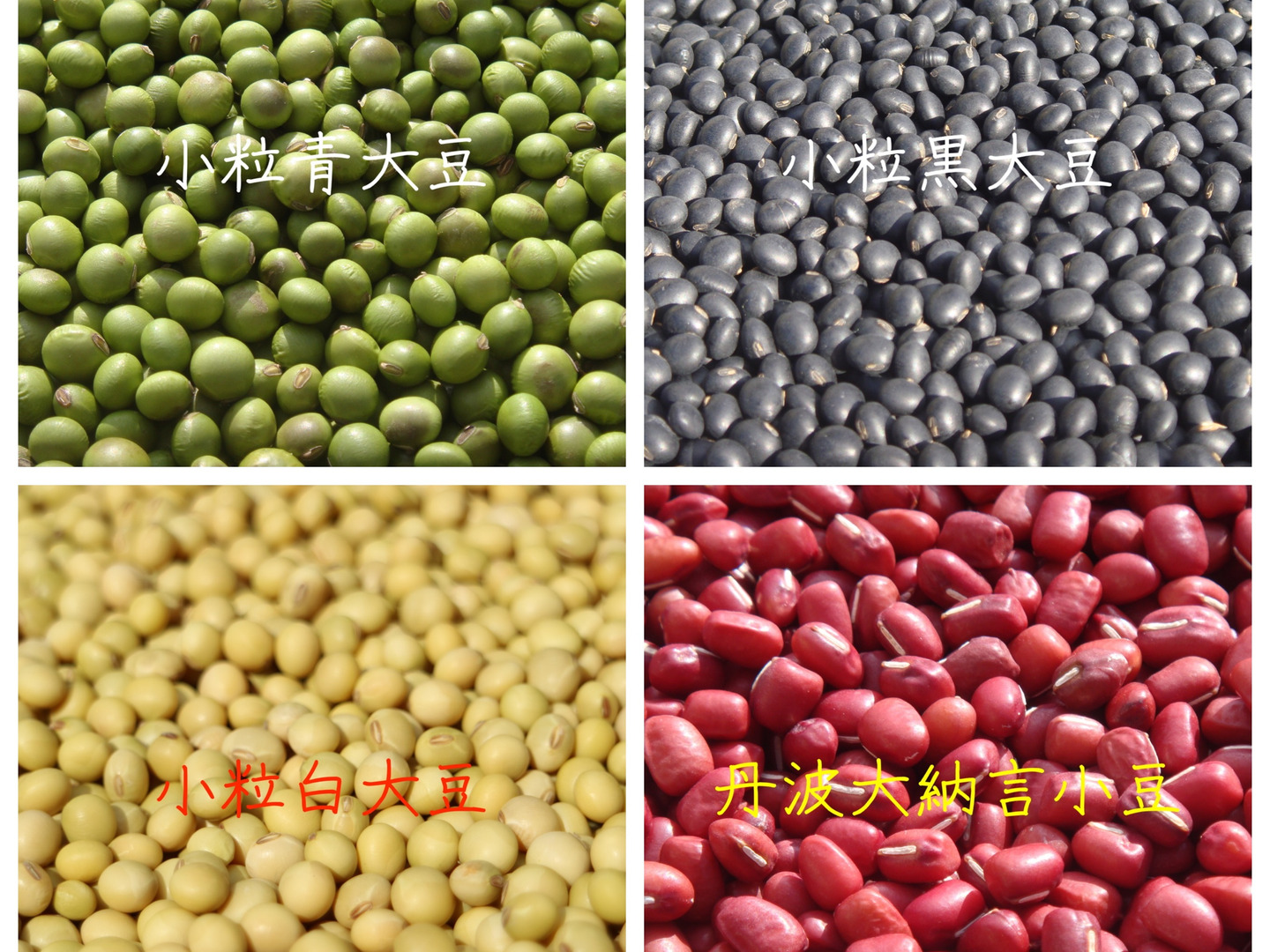 ●あおばた豆・・・大粒の青大豆で、火を通してもきれいな緑色が残ります。甘みの強さが特徴でサラダにすると存在感を発揮します。色を生かしてきな粉にするのもおすすめです。