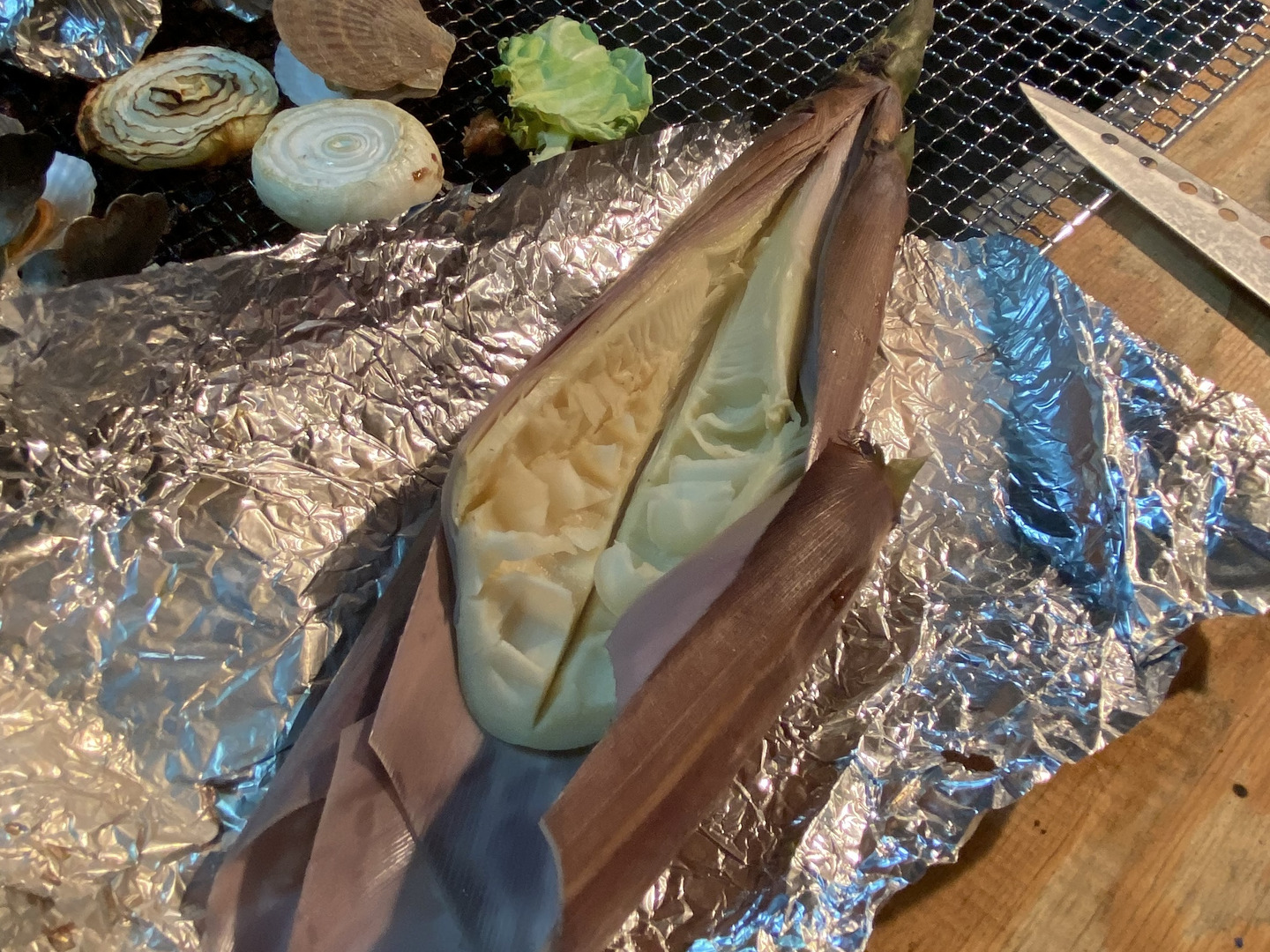 煮炊きだけでなく、炭火やオーブンで皮ごと炙って、ごま油とポン酢や醤油でも甘くて歯応えあるたけのこのイメージが変わります。揚げても焼いても抜群の美味しい筍です