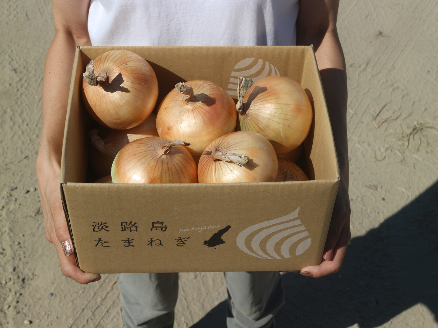 地元の淡路牛の堆肥や有機肥料を使用し大阪湾のミネラルたっぷりの潮風を浴びて育てた新玉ねぎを追熟させました。
