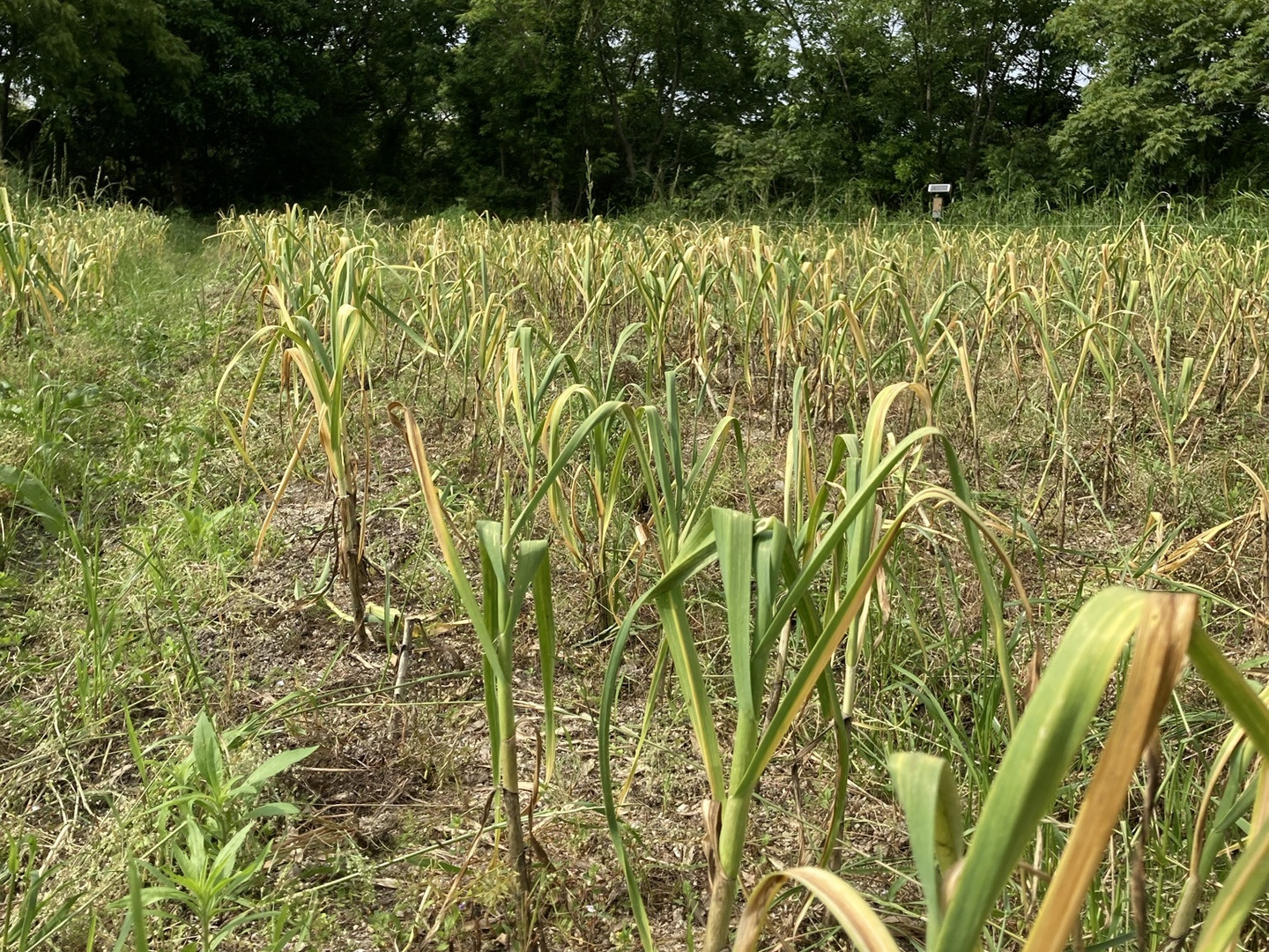 ビニール資材、農薬、除草剤、肥料を使っていません。冬から春にかけて、草引きをしてはニンニクに草布団をかけて微生物を育て、土を育み栽培してきました。