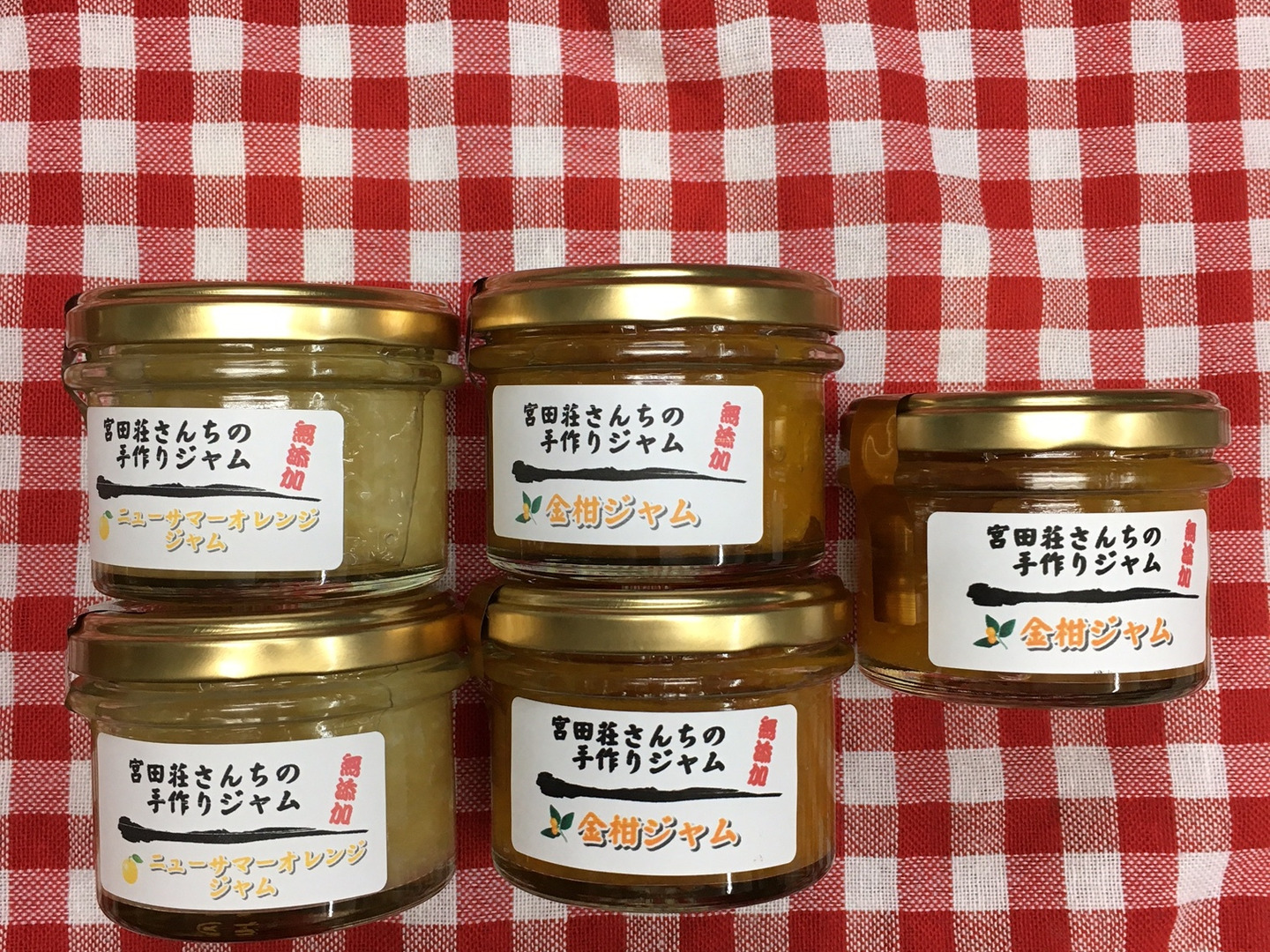 ニューサマーオレンジ(110g)2個、金柑ジャム(110g)3個、合計5個入り