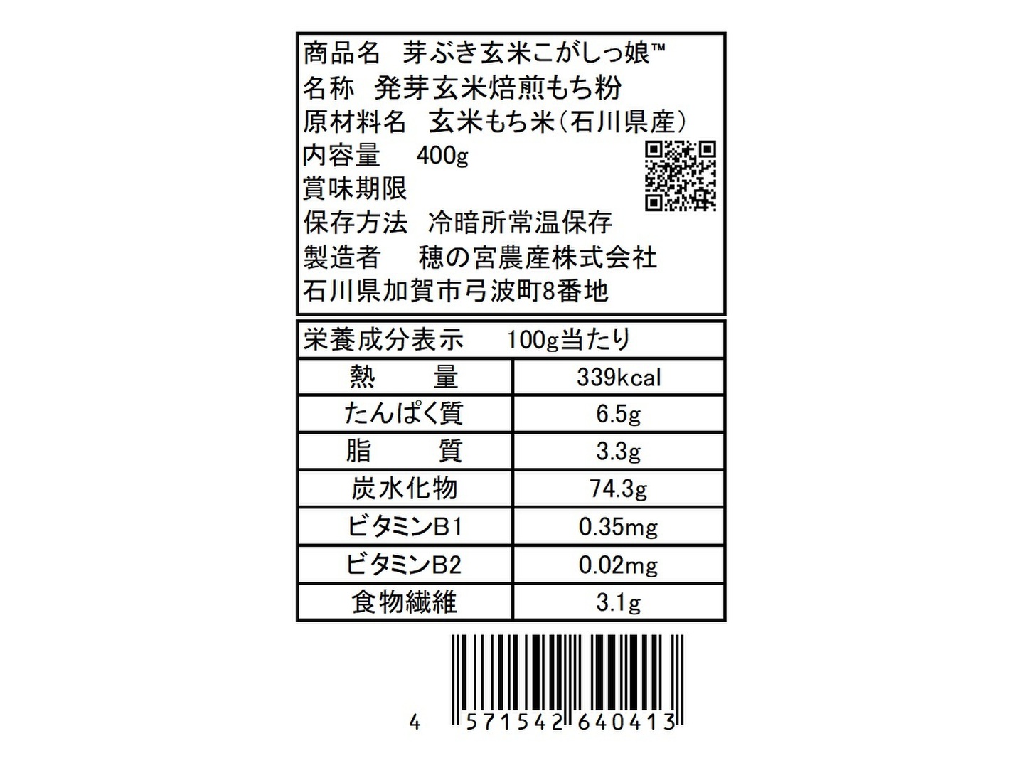 発芽玄米を焙煎し粉砕したもち米粉です。