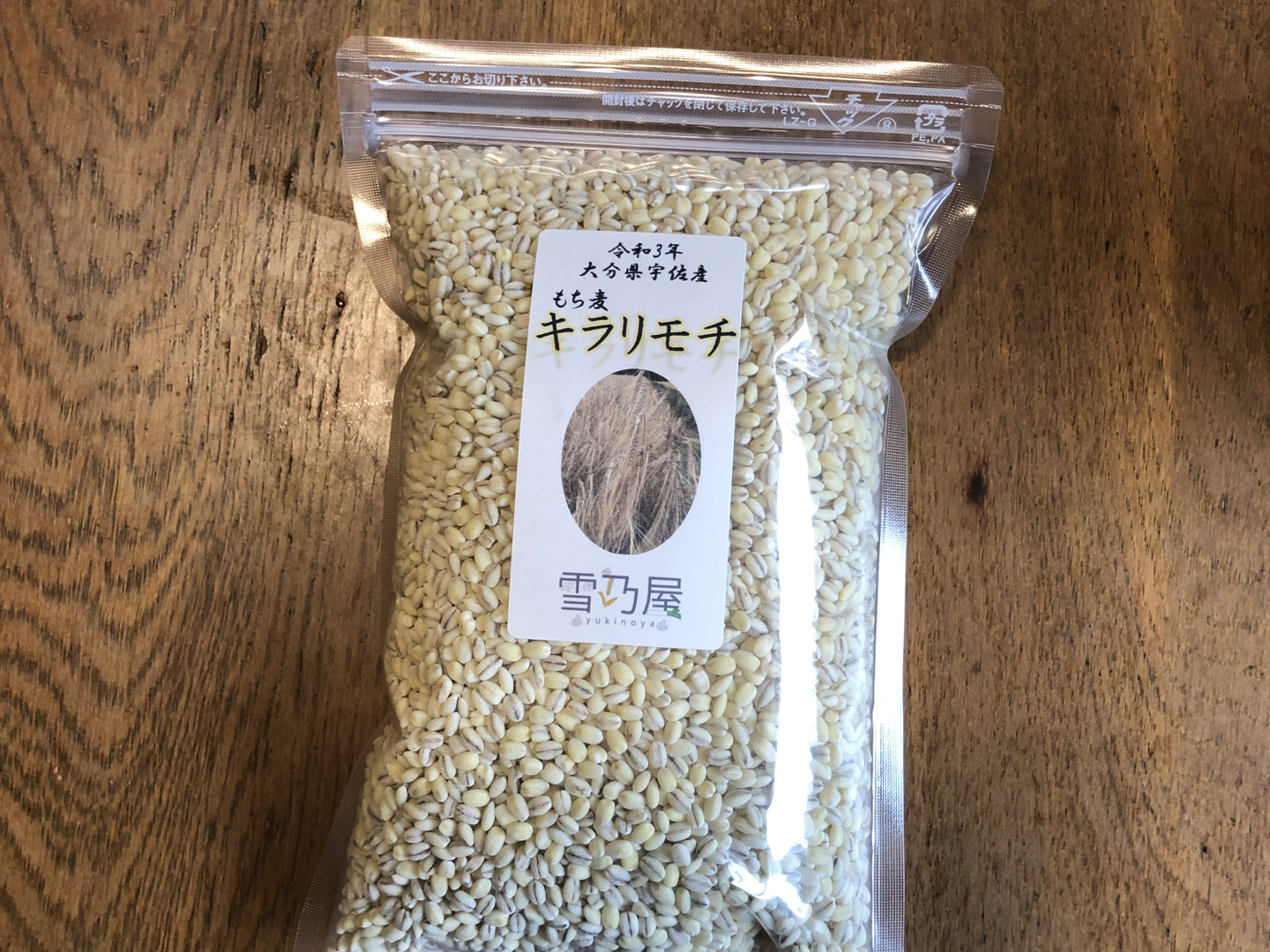 大分県宇佐市で栽培した令和3年産のもち麦「キラリモチ」です。