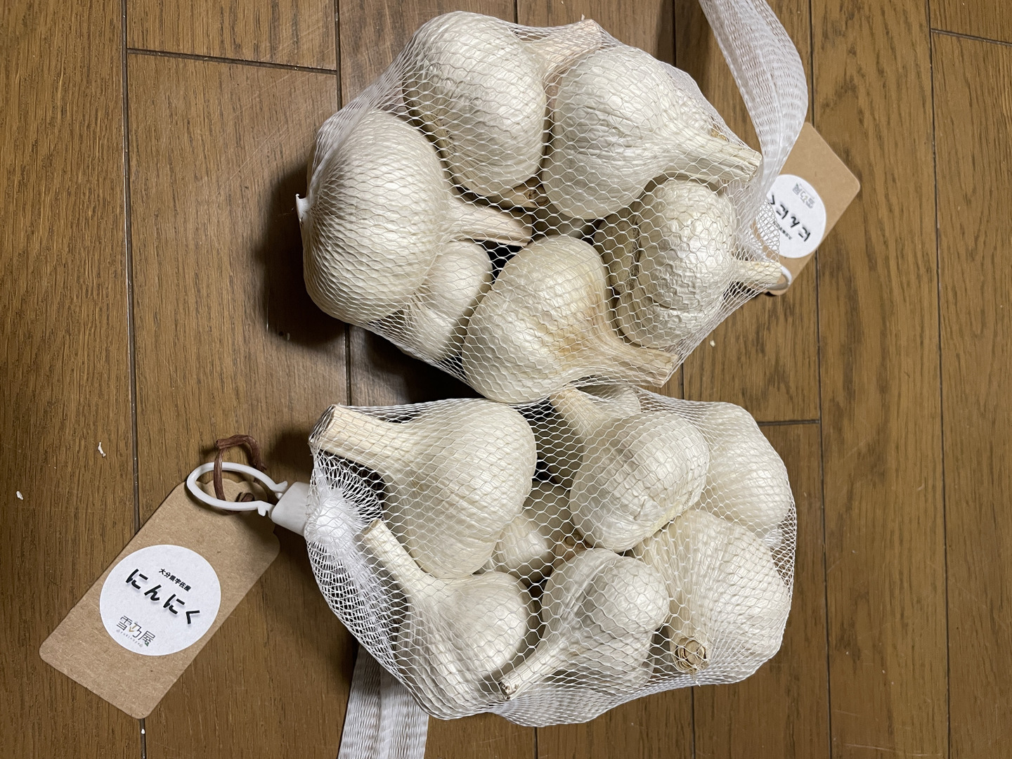 にんにくをサイズ混合で1ネット500gいれています。