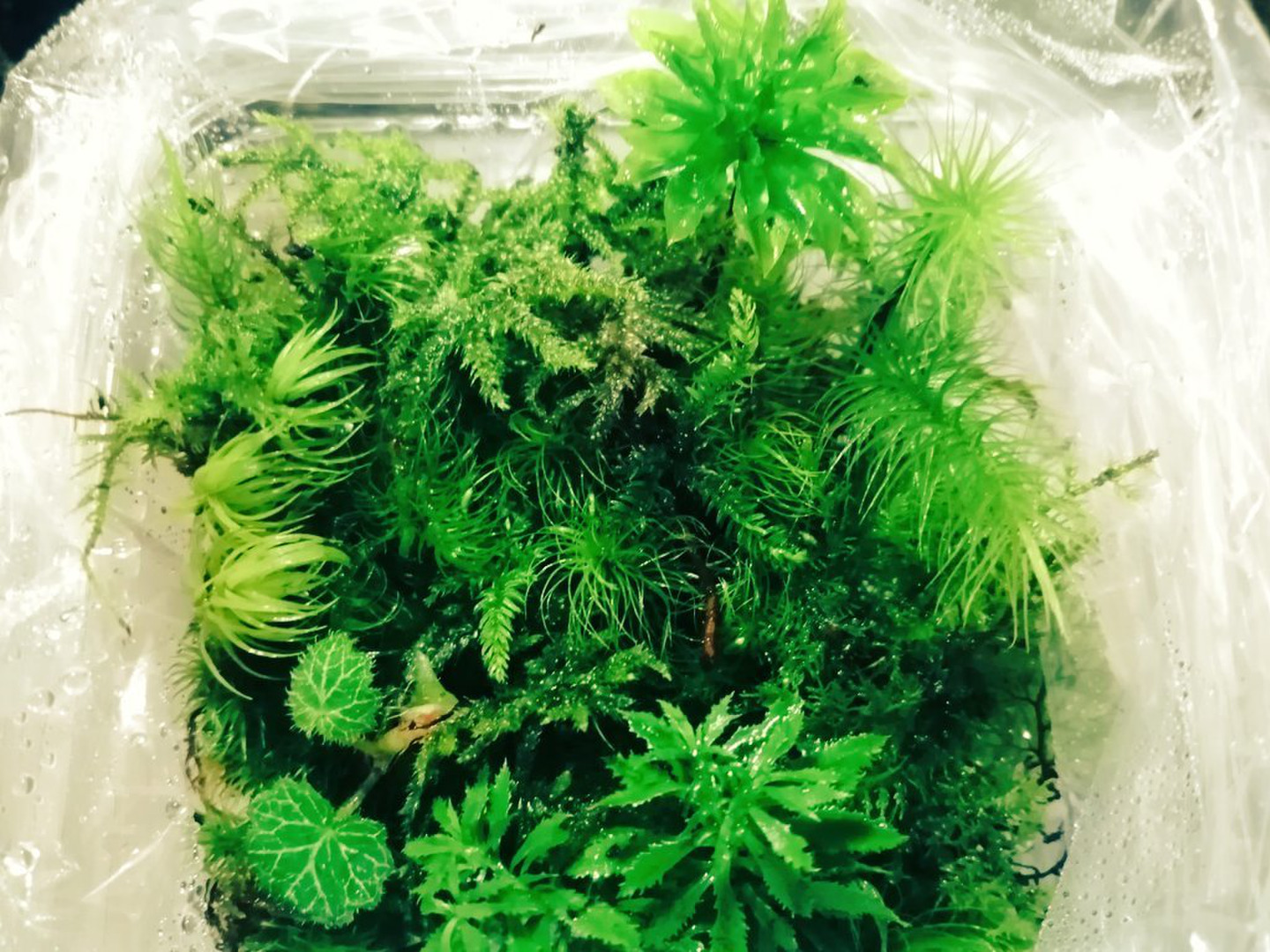 ◎半透明のビニール袋を膨らませて中に容器を入れて袋内側に霧吹きして袋を閉じておいてもいいですよ。◎苔は自然の状態で鮮度を保つため、できるだけ土の付いた状態でお届けしています。そのため虫や枯れ葉小石など付着している場合があります。