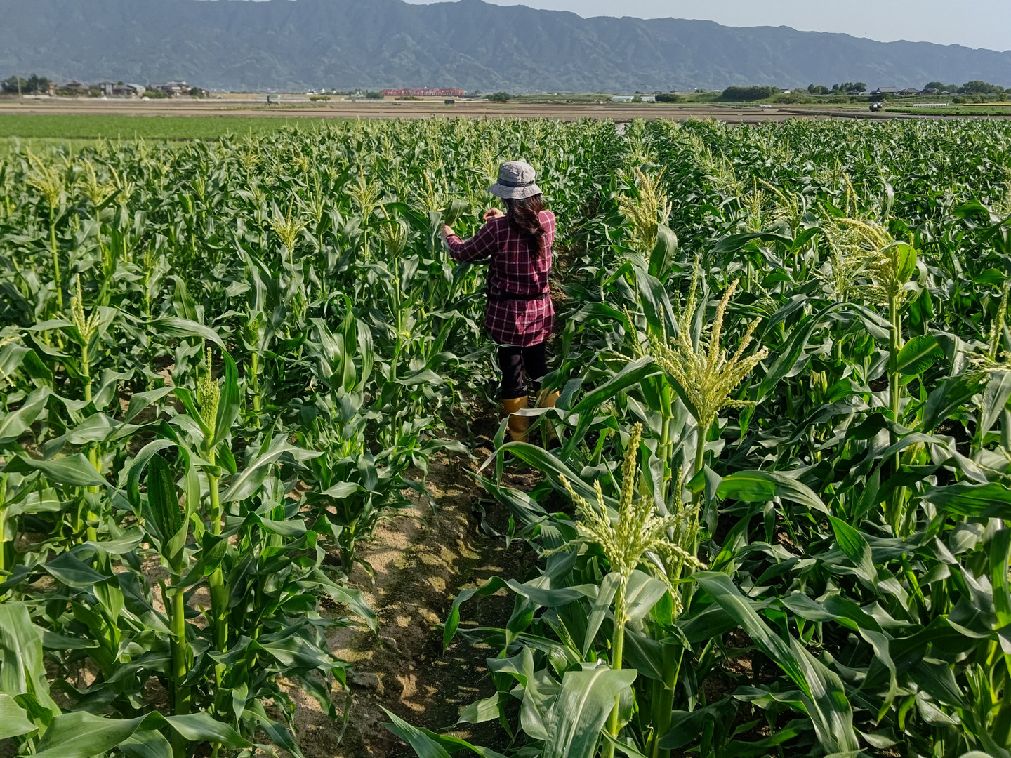 ②日が昇る前の早朝4時から収穫します。何故なら、トウモロコシは夜中に糖度を蓄え昼間に糖度を放出します。