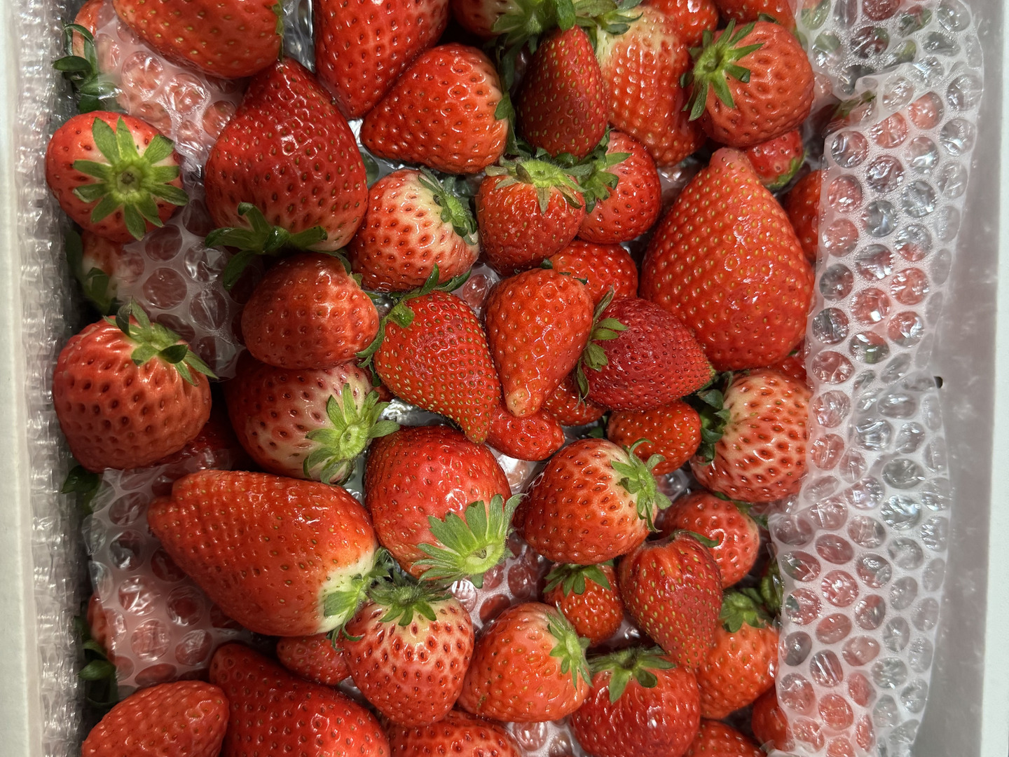 昨シーズンより何度か改良を重ね、最終的に箱の中の全面を大粒のプチプチ(緩衝材)で覆っての発送となります。梱包に最善は尽くしますが、それでも起きてしまう輸送傷みはご理解ください。