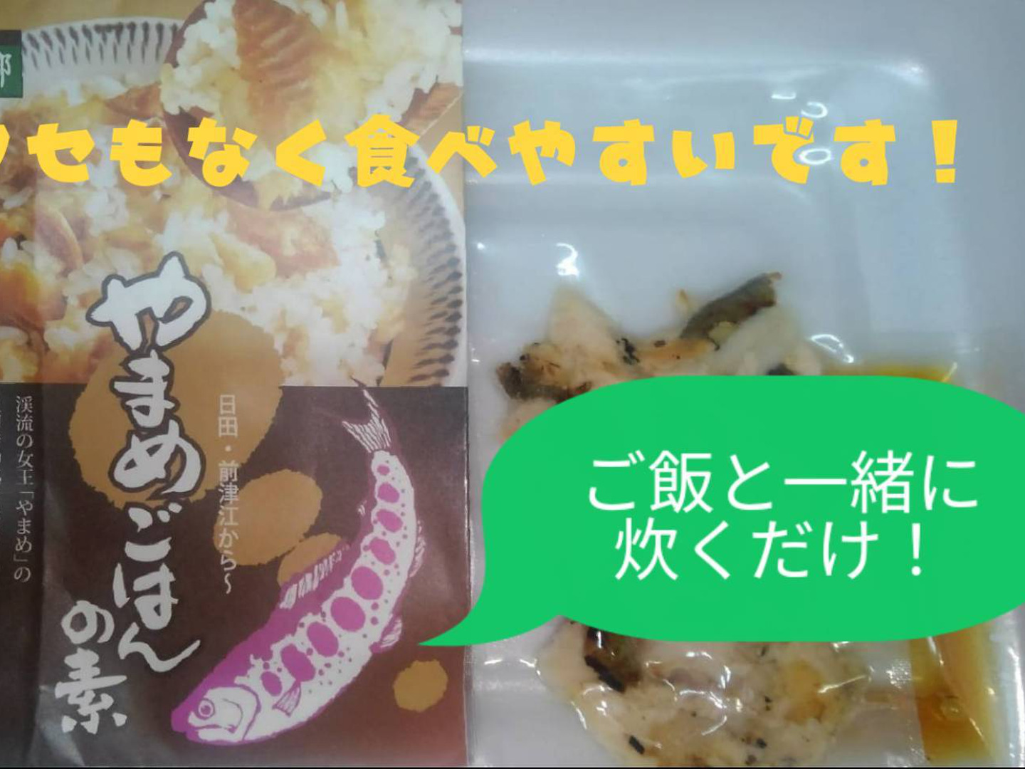 贅沢に、尺やまめを、三枚に下ろし、香ばしく素焼きにして、たきあげますので、あっさりクセがなく、おこさまから、ご年配のかたまで、美味しくかいただけます。