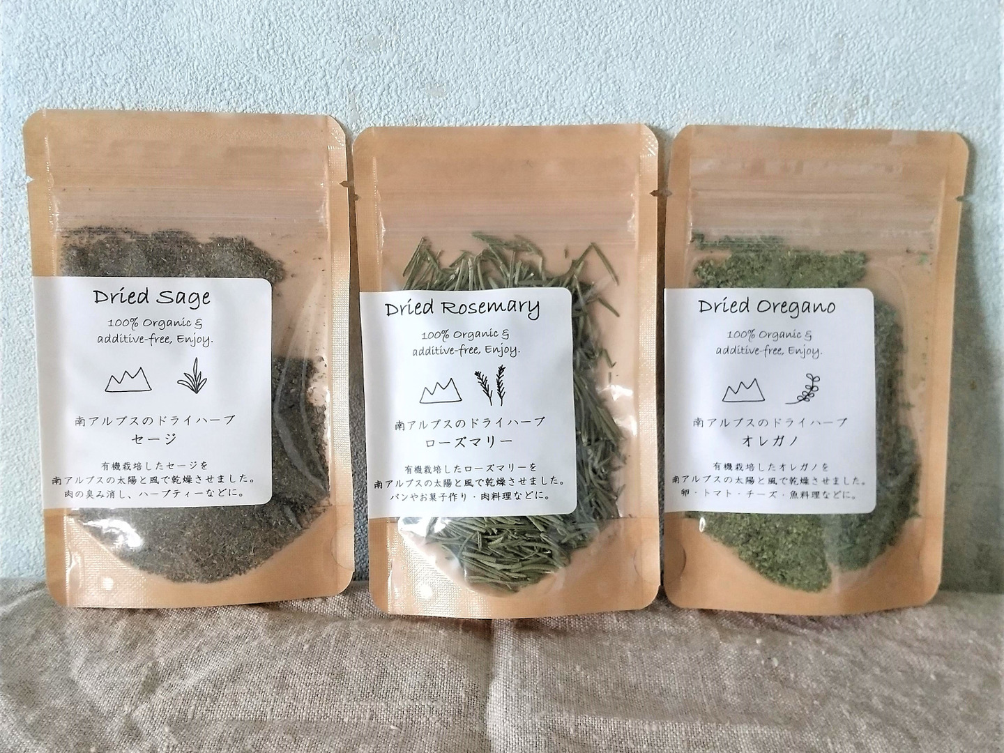 3種セットB (ローズマリー・オレガノ・セージ) 南アルプスのオーガニック・ドライハーブ