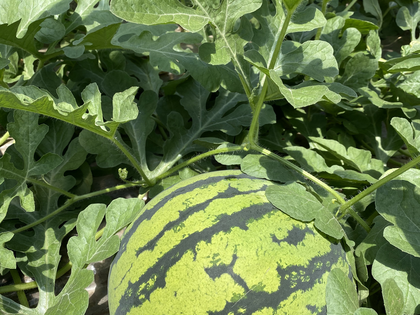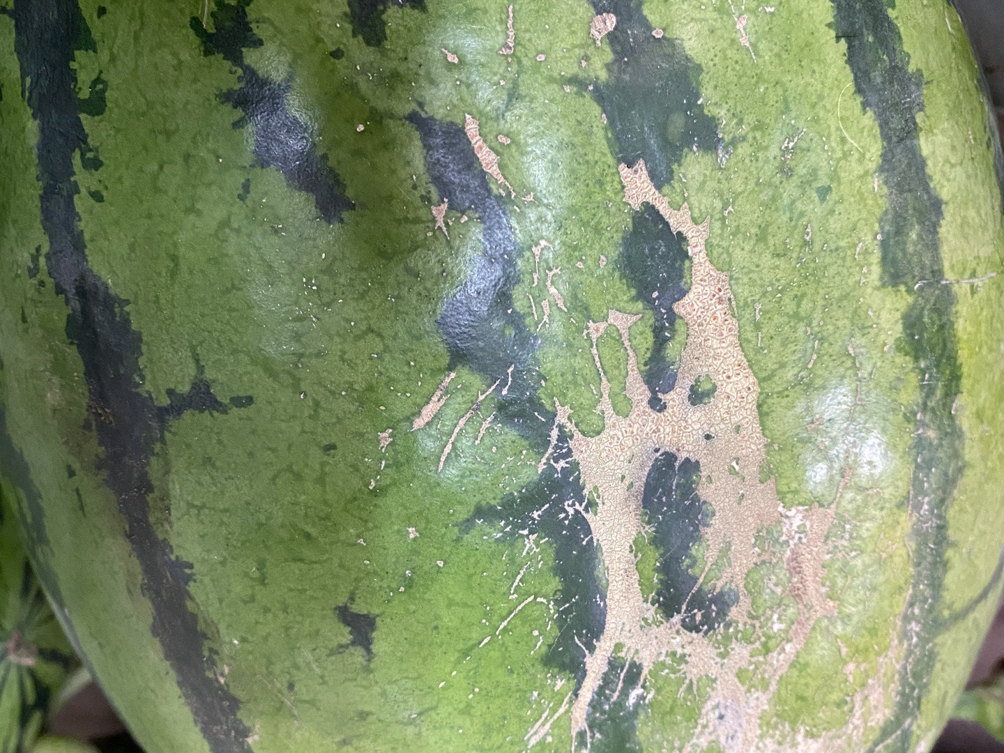 スイカの表面にキズや日焼けがあります。