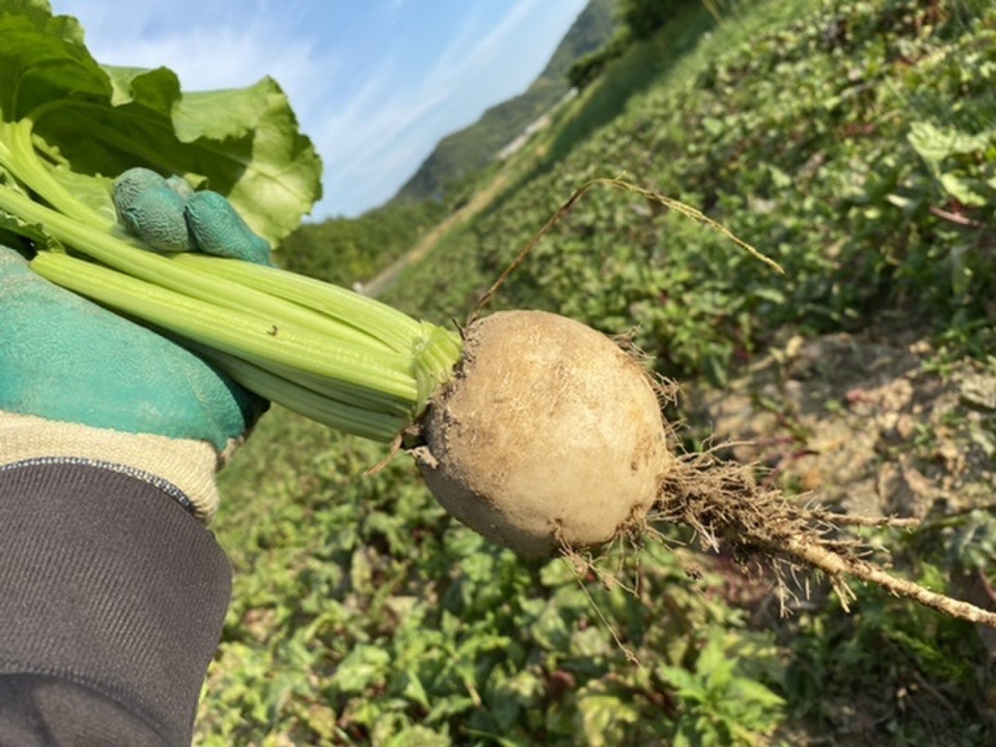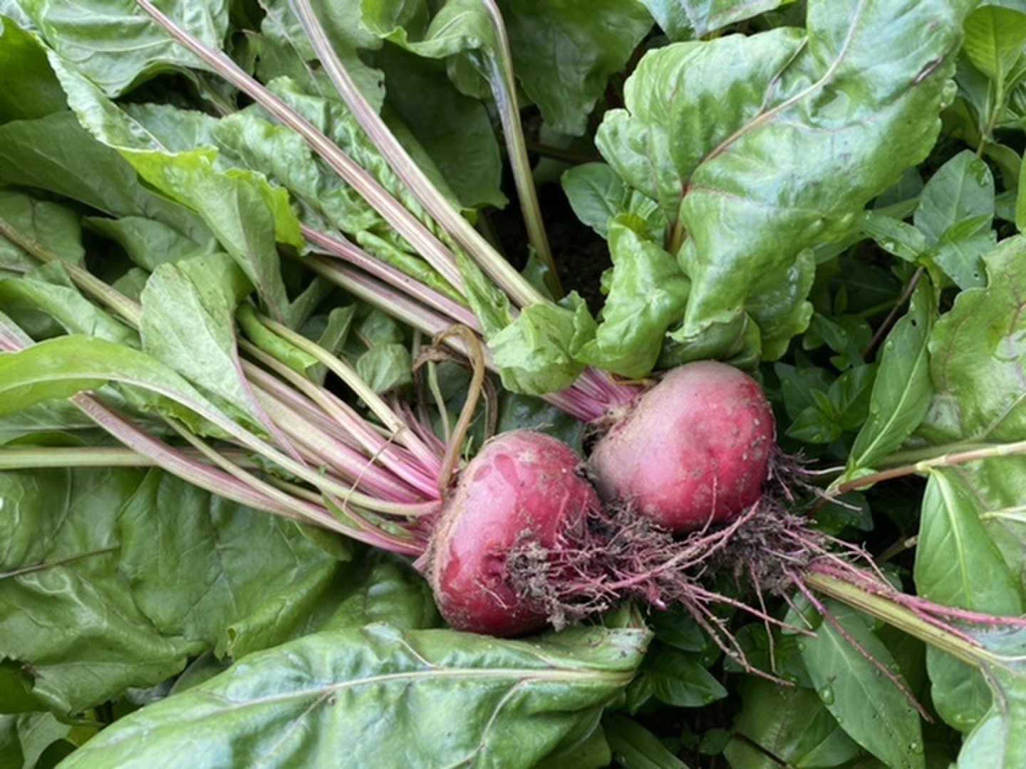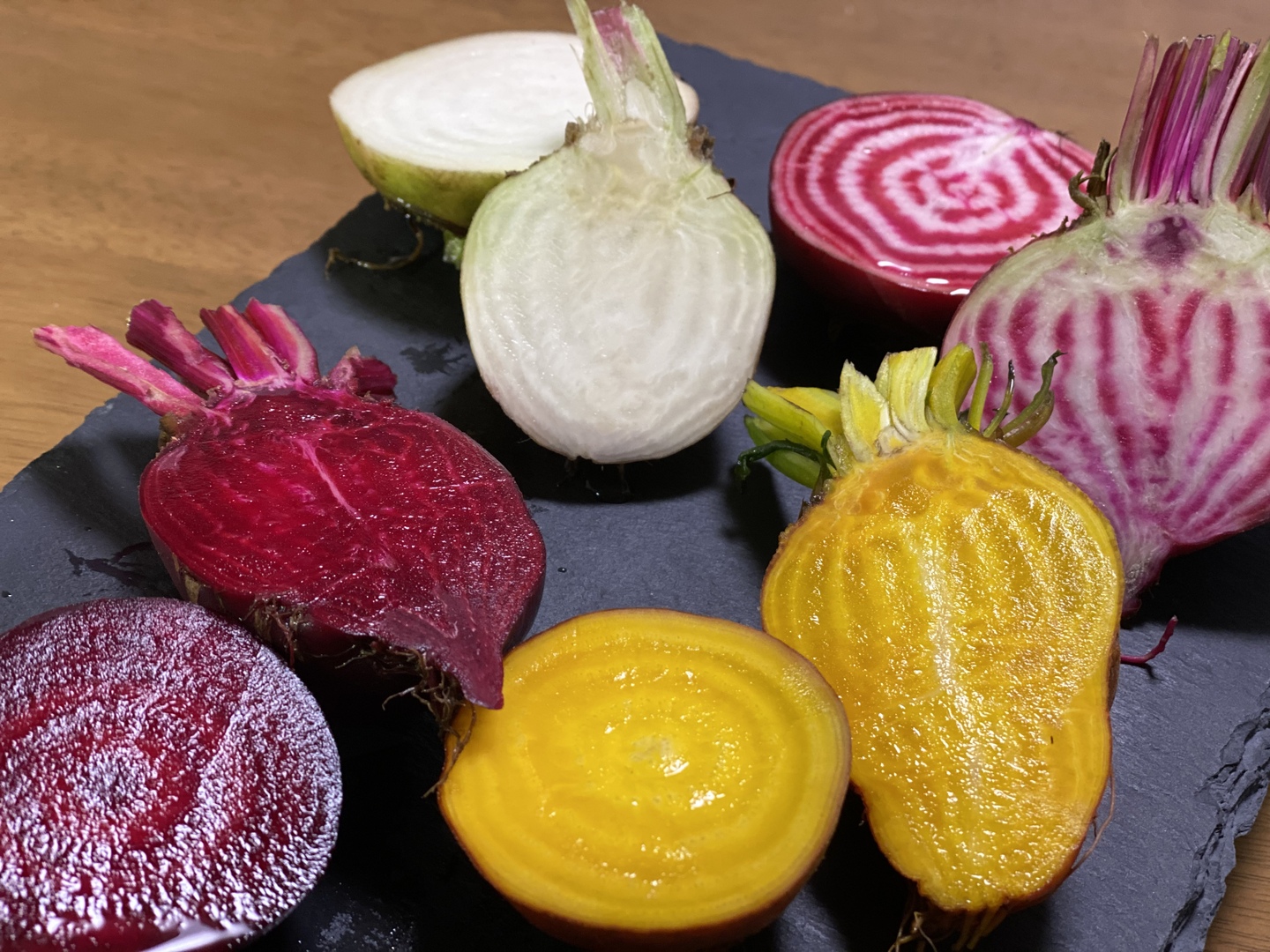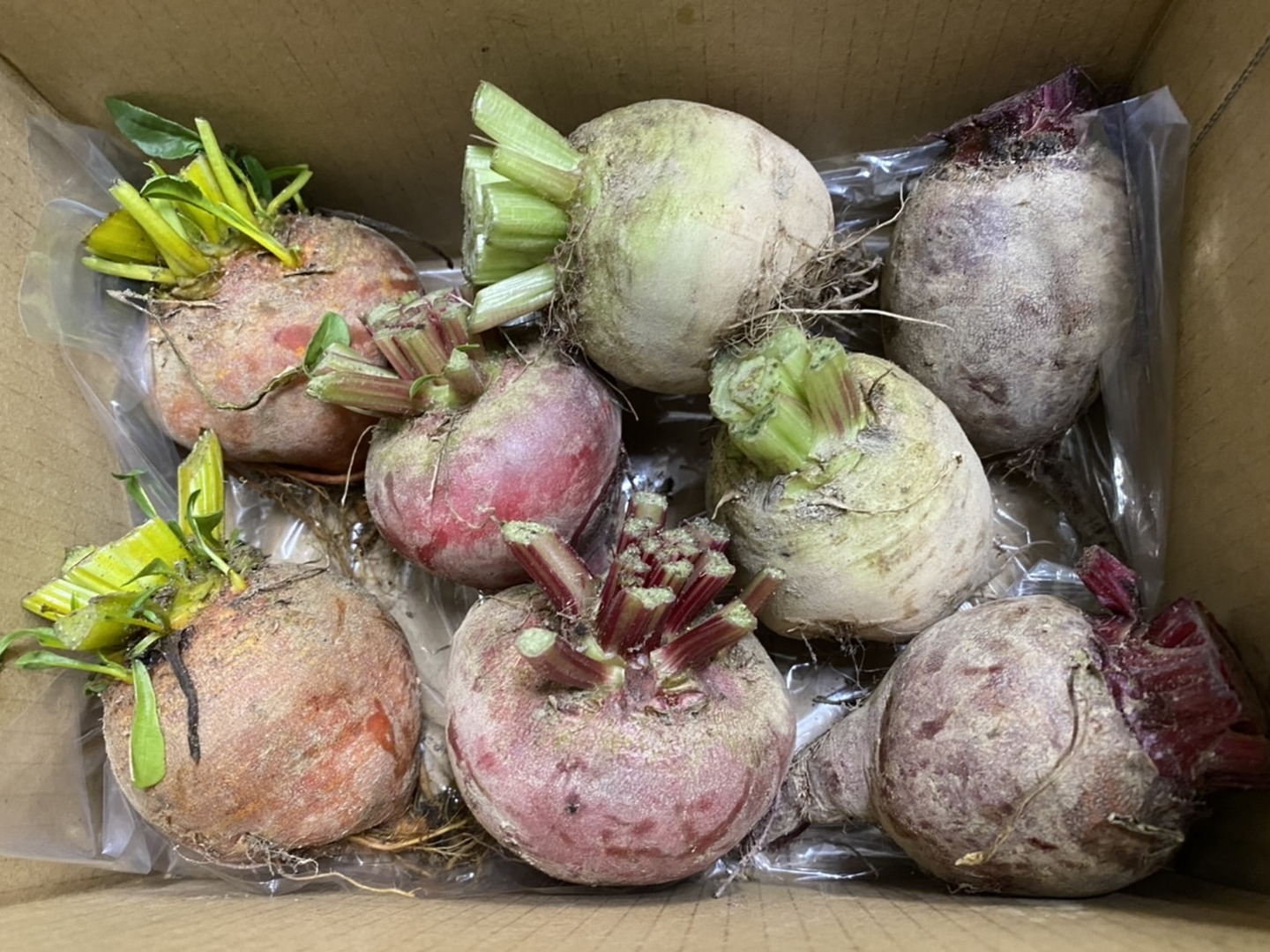 見た目は赤かぶに見えるビーツですが実はほうれん草の仲間。その鮮やかな赤い色はポリフェノールを多く含んでいる証。そのほかにも鉄分やミネラルを多く含んでいて、血圧低下、老化防止、認知症の予防、美容効果も期待されているスーパーフードです。冬収穫のものは甘くなるのが特徴ですが、夏のものはシャキシャキとしたみずみずしい食感とほのかな甘みがあります。スムージーなどにして栄養価と鮮やかな色を楽しんでいただくのがオススメです‼️