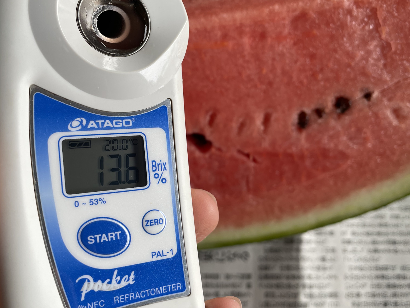 シャリ感はもちろん、甘さもしっかりある大玉スイカです。2022年の最高糖度は14度‼️平均12度前後のとても甘い大玉スイカです🍉