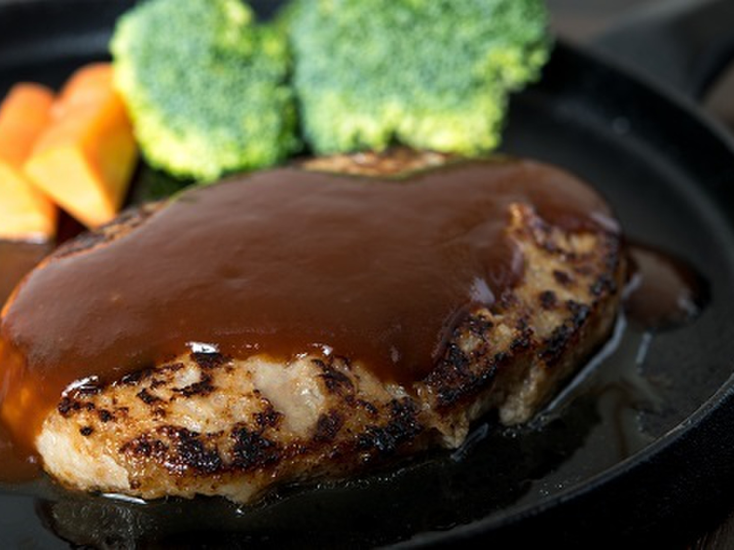デュロックファームの「四万十ポーク」と牛肉のふくっらなハンバーグ。