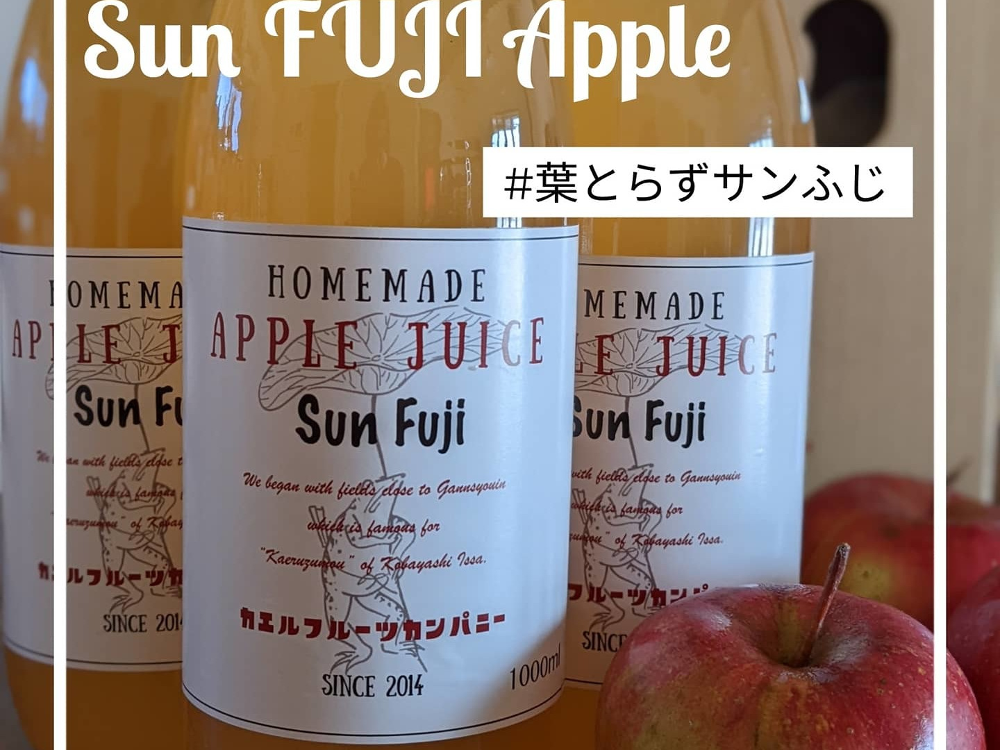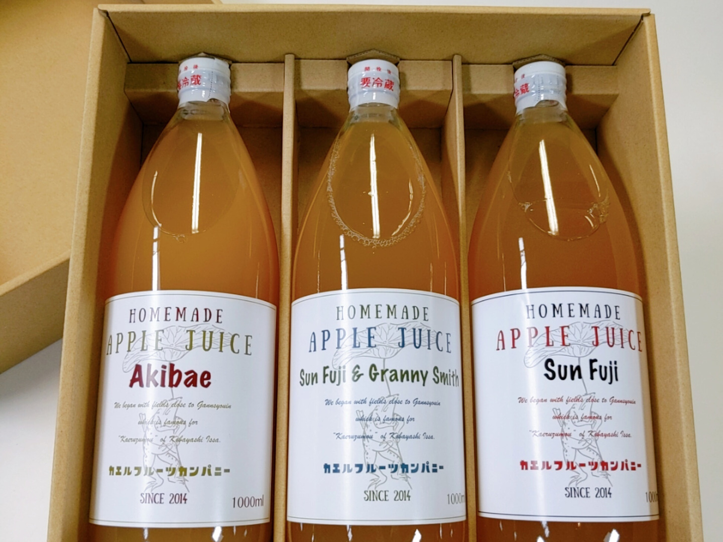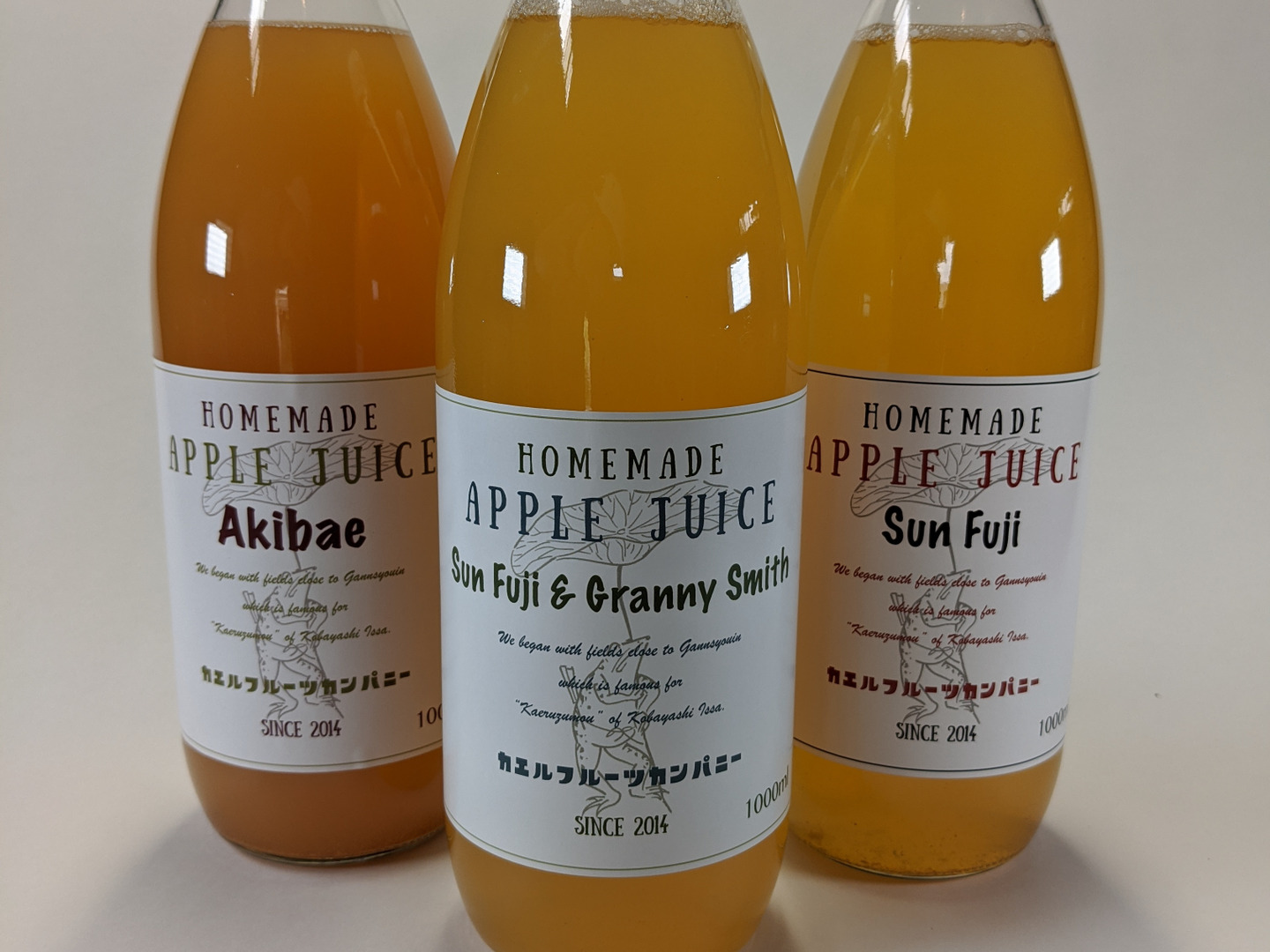 カエルフルーツカンパニーおすすめのりんご3種類をジュースにしました。