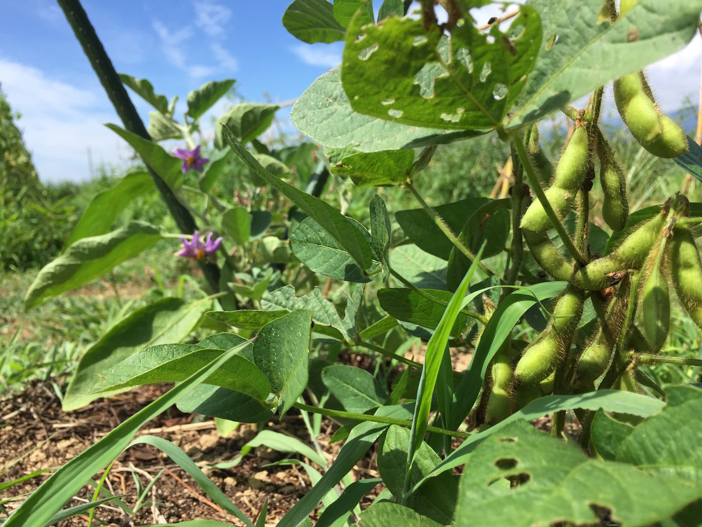 また、環境への配慮(特に昨今のマイクロプラスティック問題)から、くさむらの畑ではビニールマルチは使用しません。その代わりに、地際で刈った草で畝をマルチングします。草で覆われた不耕起の土壌には多様な生物が小さな宇宙のように生態系を作り出します。そしてそれは、もっとも微細な生物である微生物の相が豊かである証拠なのです。有機物の分解者であり、植物の根に養分を供給する役割を担う微生物が棲み続けられる環境を維持していくことで、農園くさむらの野菜の味ができあがるのです。