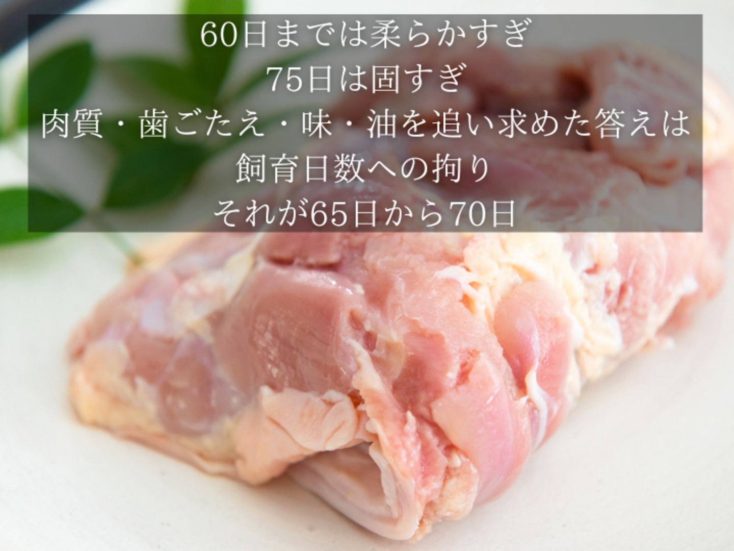 ※味わい深く、柔らかく、歯ごたえのある良い肉質を求めた結果の飼育日数