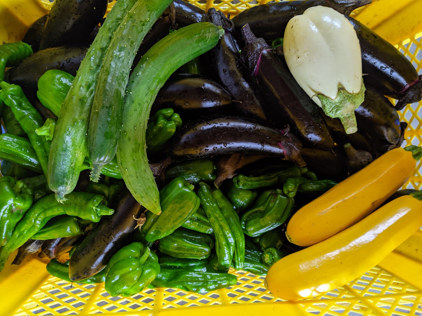 なす、ピーマン、きゅうり、オクラ、枝豆など