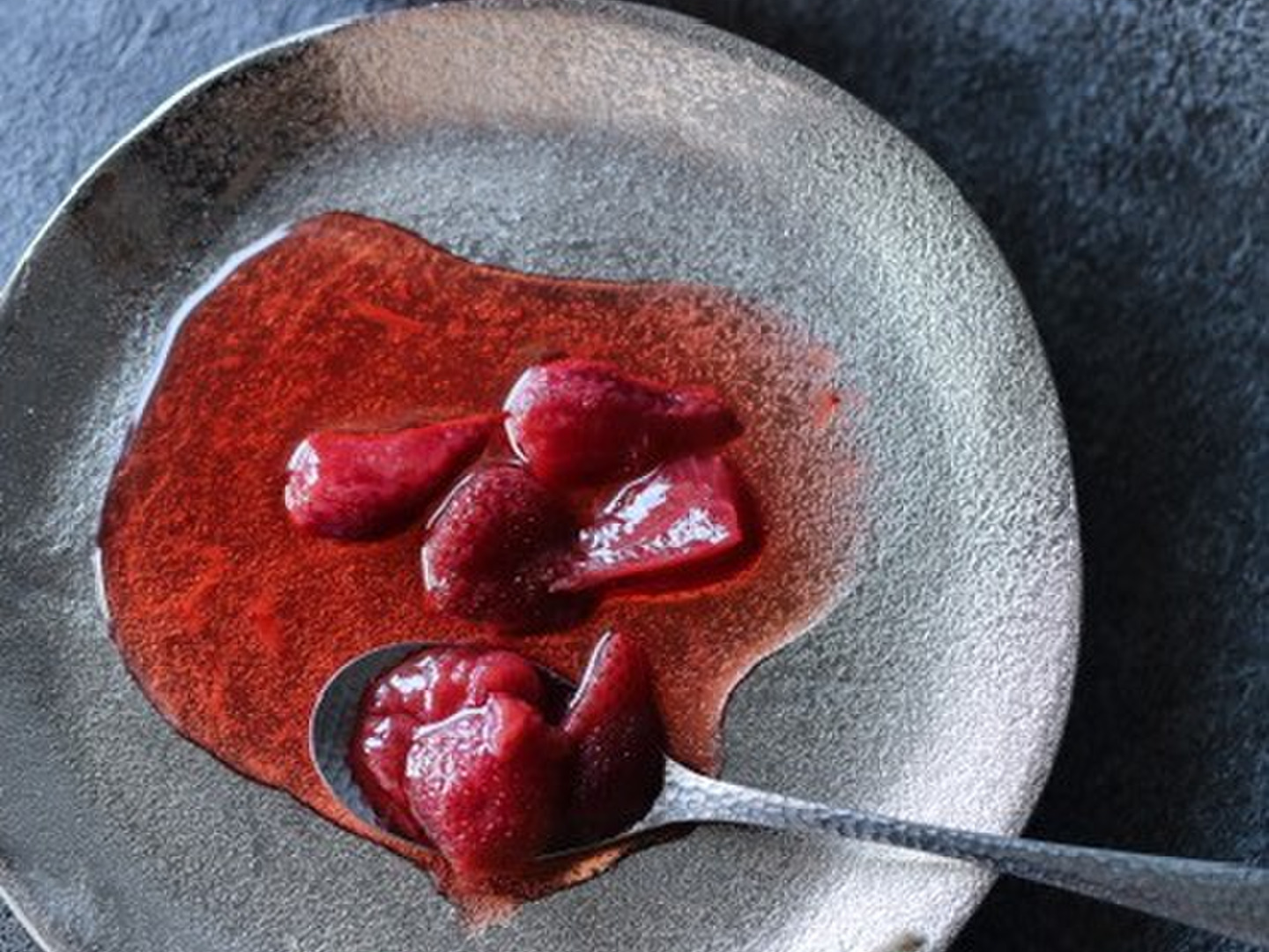 あまおうにグラニュー糖をまぶし、いちごから出た水分のみで煮込んだ濃厚なコンポートです。