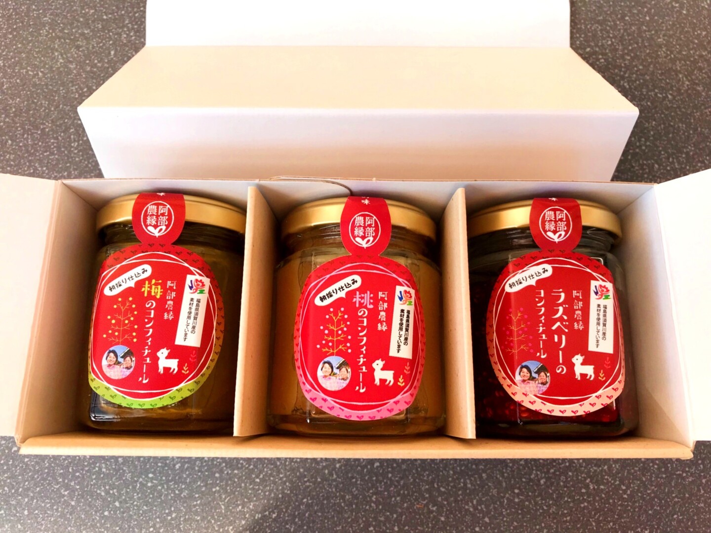 阿部農縁 コンフィチュール100g3個ギフトセット(桃・梅・ラズベリー) ジャム 贈り物・贈答用に