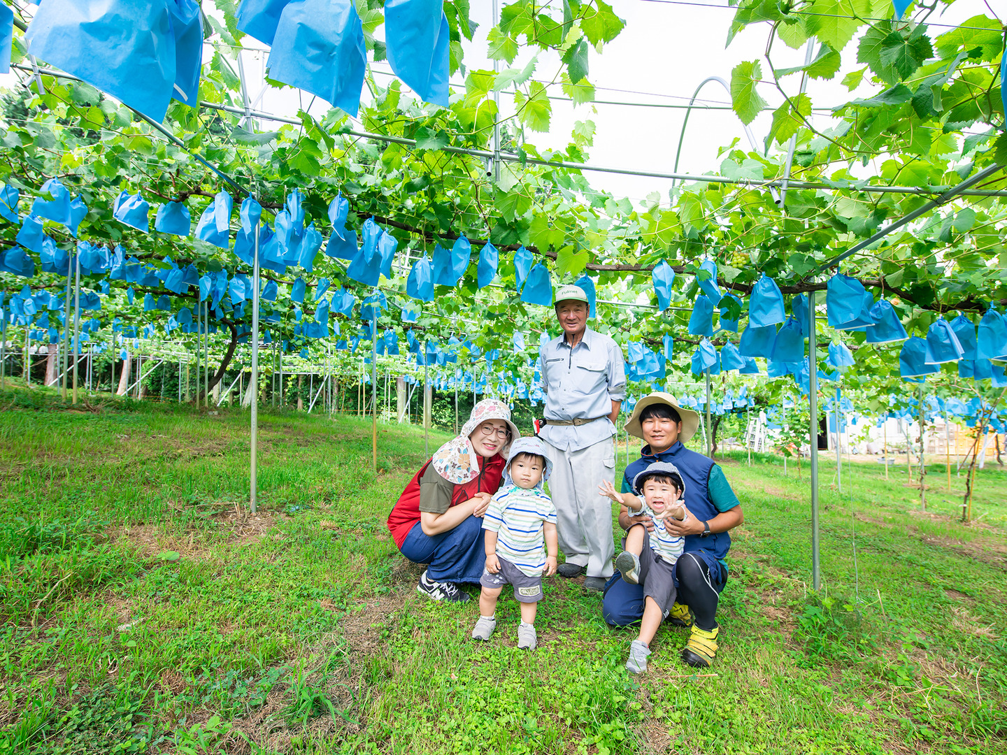 家族4人、みなさまの笑顔のため家族総出で丹精込めたぶどう作りを心がけております。