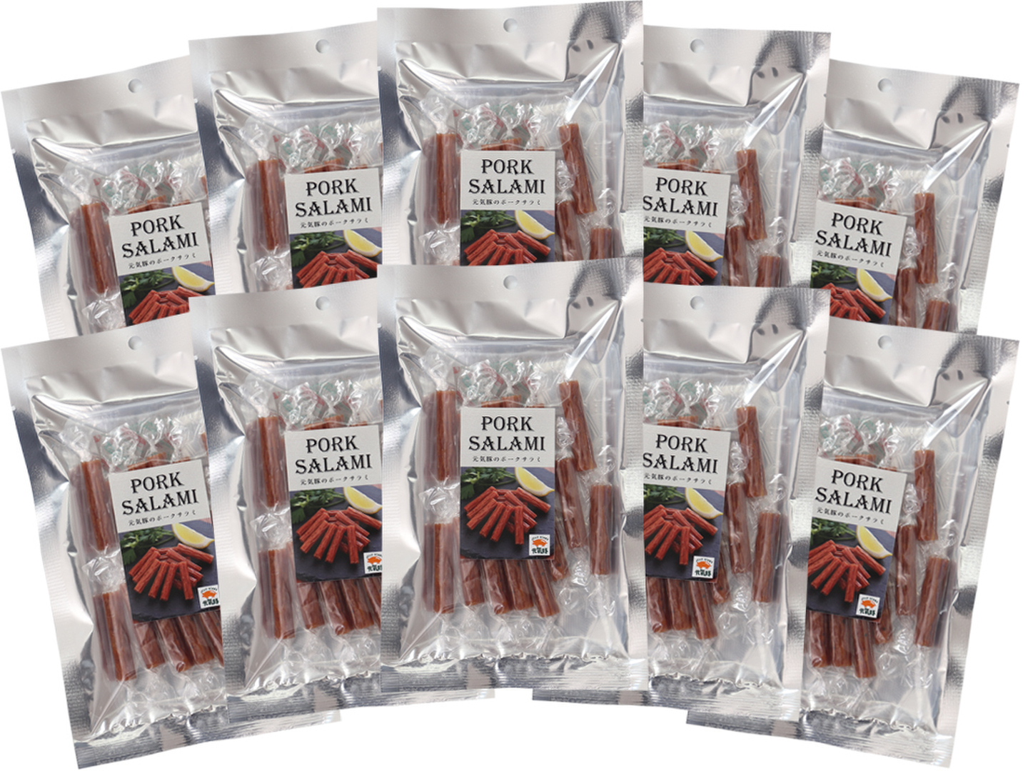 食べ始めたら手が止まらない美味さ!元気豚サラミ 60g×10パック