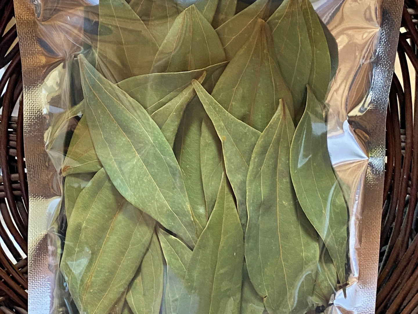 和歌山の温暖な気候で育ったシナモンの木から、一枚ずつ丁寧に収穫・乾燥させた「国産シナモンリーフ」です。