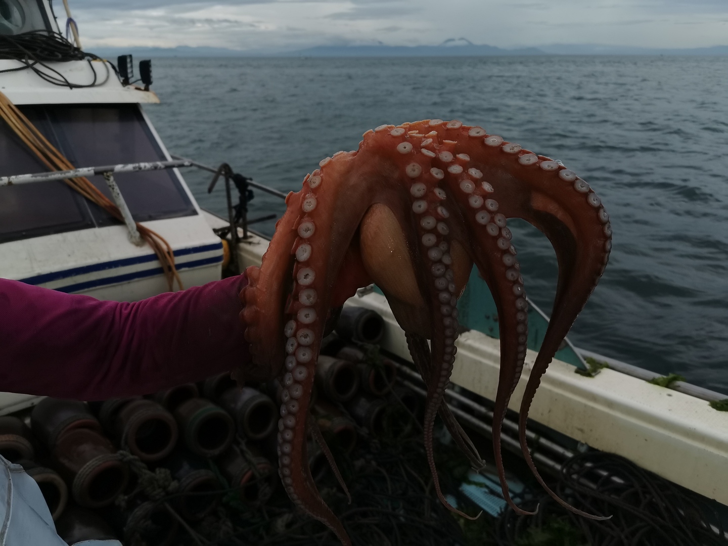 生のタコですので、贈り物としても珍しがられ、大変喜ばれると思います。また7月後半ぐらいからは、夏場特有の、タコが自足を食べる習性により、キズ物の足切れタコが多く採れるようになります。そちらの商品も激安価格にて出品予定ですので、よろしくお願いします。販売価格は1キロあたりの価格ですので可能な限りご要望にお応えできるように努力しますので、3匹で1キロや、二匹で1キロ、3匹で3キロなど、コメントにてご質問下さい。初めてなもので、何かとご迷惑おかけするかと思いますが、良いお取り引きができるように努力いたしますので、よろしくお願いします。