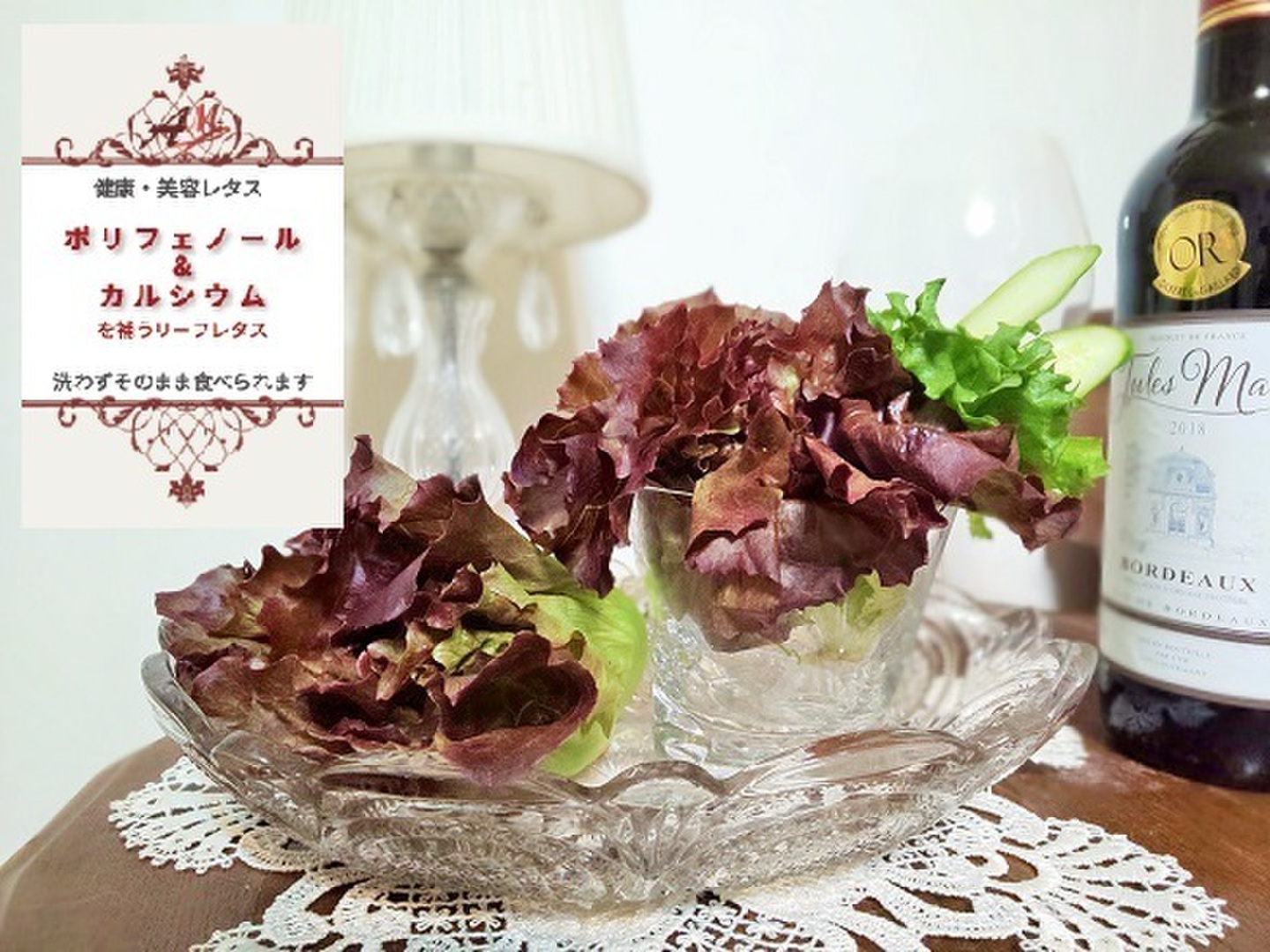 レタスでポリフェノール&カルシウム補給!赤ワインと同量のポリフェノール、牛乳と同量のカルシウムを含むレッドリーフレタスです【栽培期間中農薬不使用・完全閉鎖型水耕栽培】