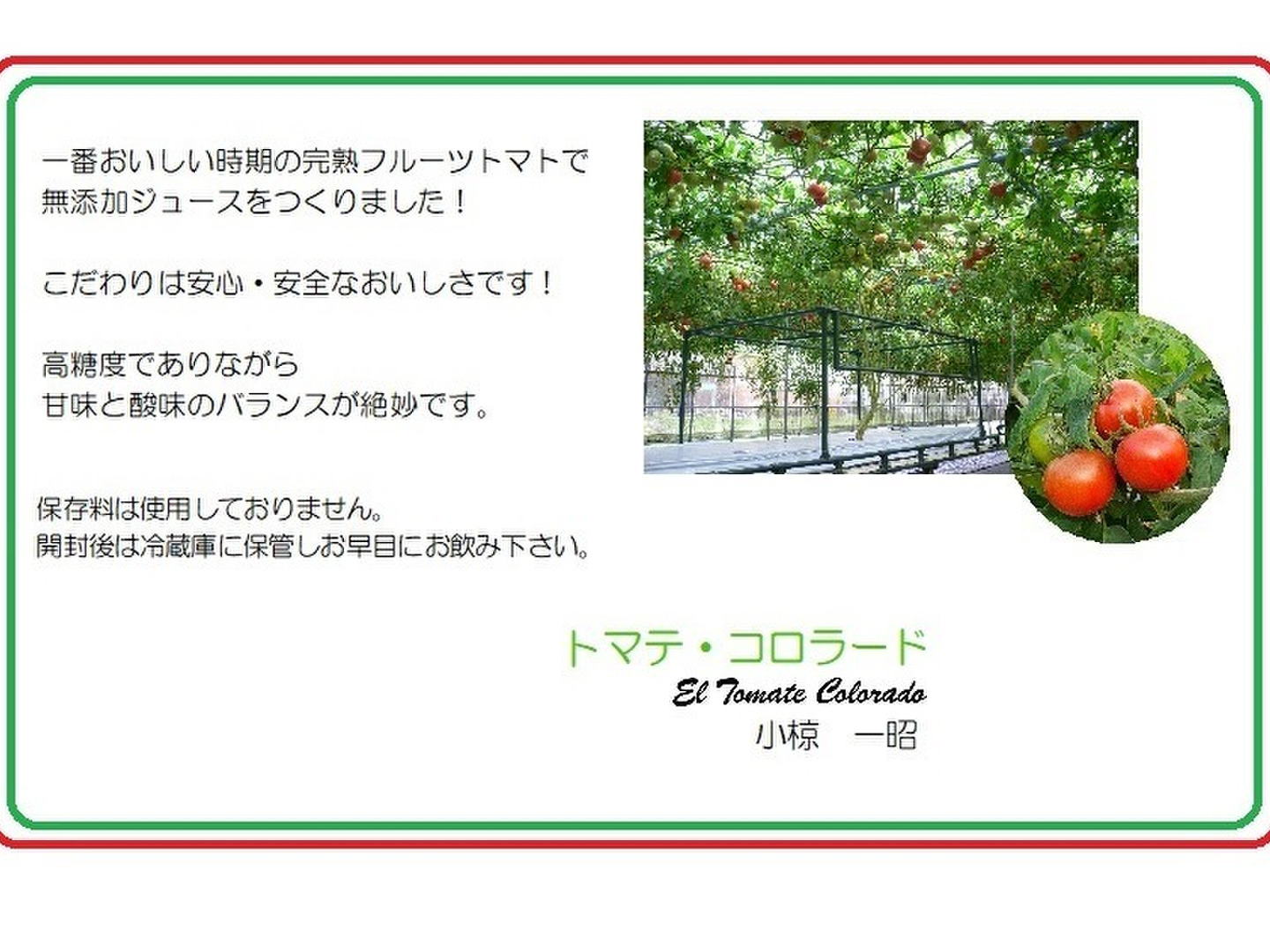 フルーツトマトの専業農家だからこそできる贅沢なジュースです。
