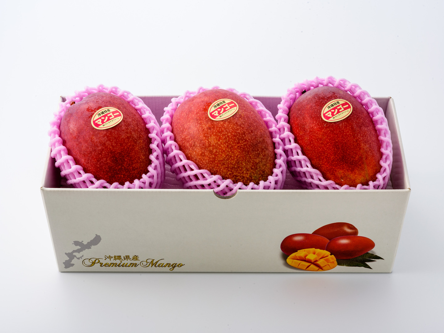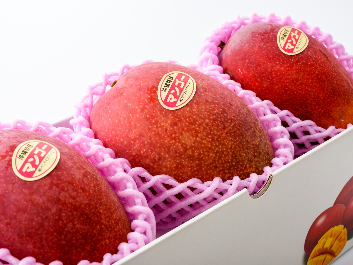 沖縄県本島東海岸に位置する宜野座村の豊かな自然と太陽の下で育ったサンライズファームのマンゴーは、しっかりとした甘さと、なめらかな食感、濃厚な風味が特徴です。