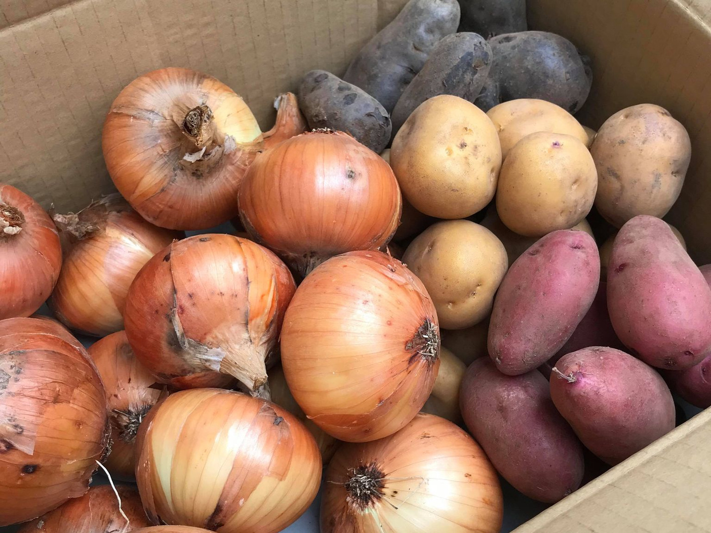 農薬と化学肥料を使わずにじゃがいも(約2.4kg)とタマネギ(約2kg)