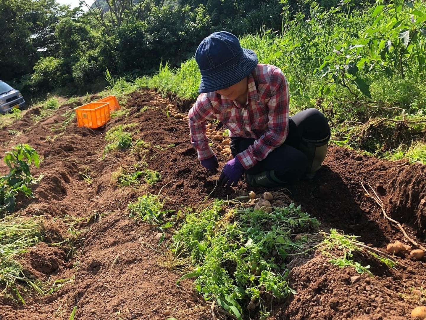 農業をはじめて丸3年。ようやく思ったようなじゃがいもをつくることができました。畝の幅を間違えたり、雑草に飲み込まれてしまったり、日に当たってほとんど緑になってしまったりと、苦戦ばかりでしたが、今年は調子が良さそうです。農薬や化学肥料はつかわず、低温貯蔵を効かせ、みなさんが気持ちよくお召し上がりいただけるように仕上げました。どうぞお楽しみください。