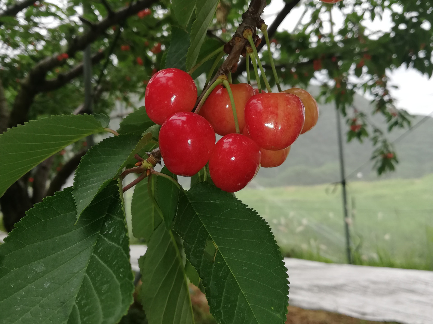 月山の雪解け水と昼夜の温度差がさくらんぼの育成に最適です。