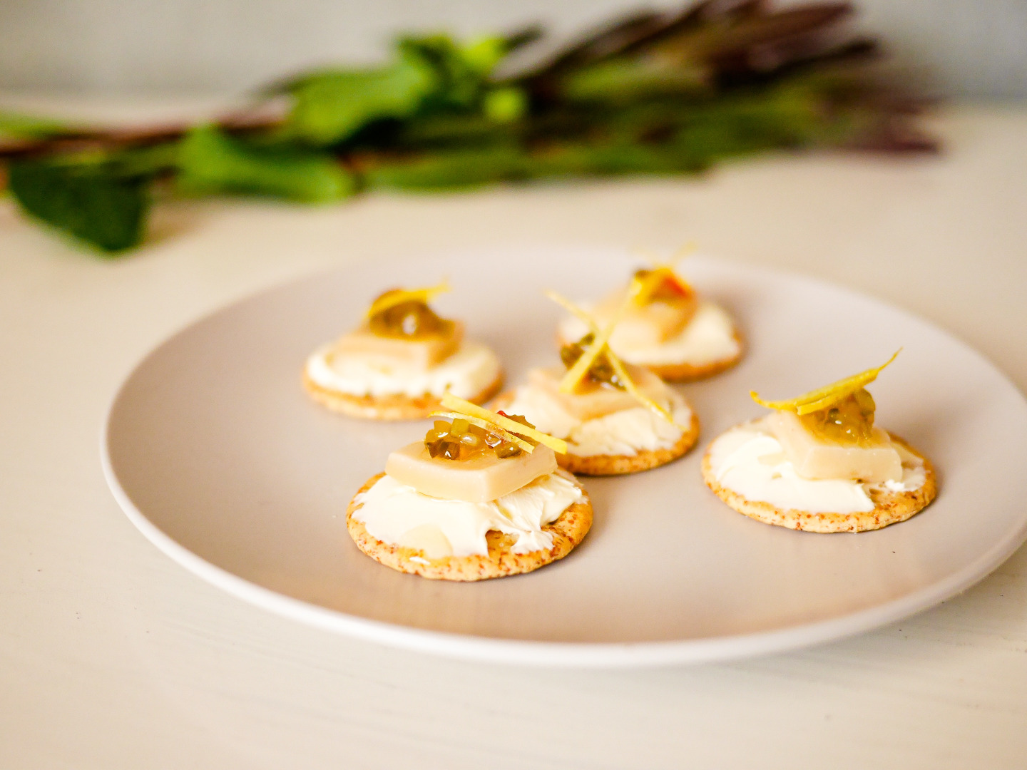 そのまま食べるもよし、クリームチーズをのせたクラッカーとも相性抜群。アクセントにはちみつやピクルスなどをのせても美味しいです。