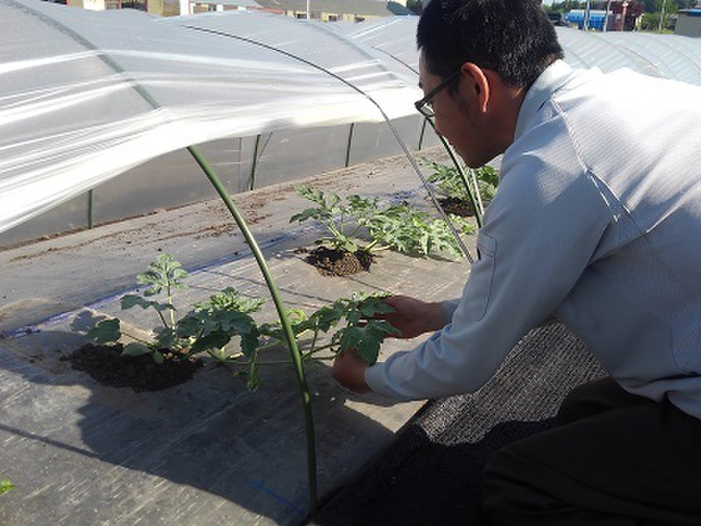 他の生産者よりも畝幅を広く取ってあるのでスイカが元気に育ちます。その 為消毒が少なくすみますし、葉面積が増えるので糖度が高くなります。